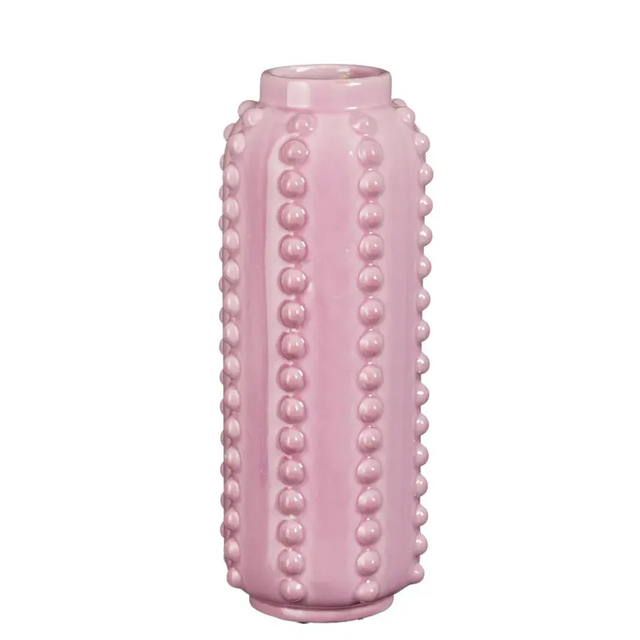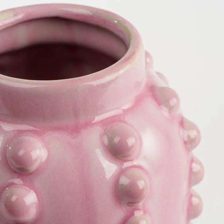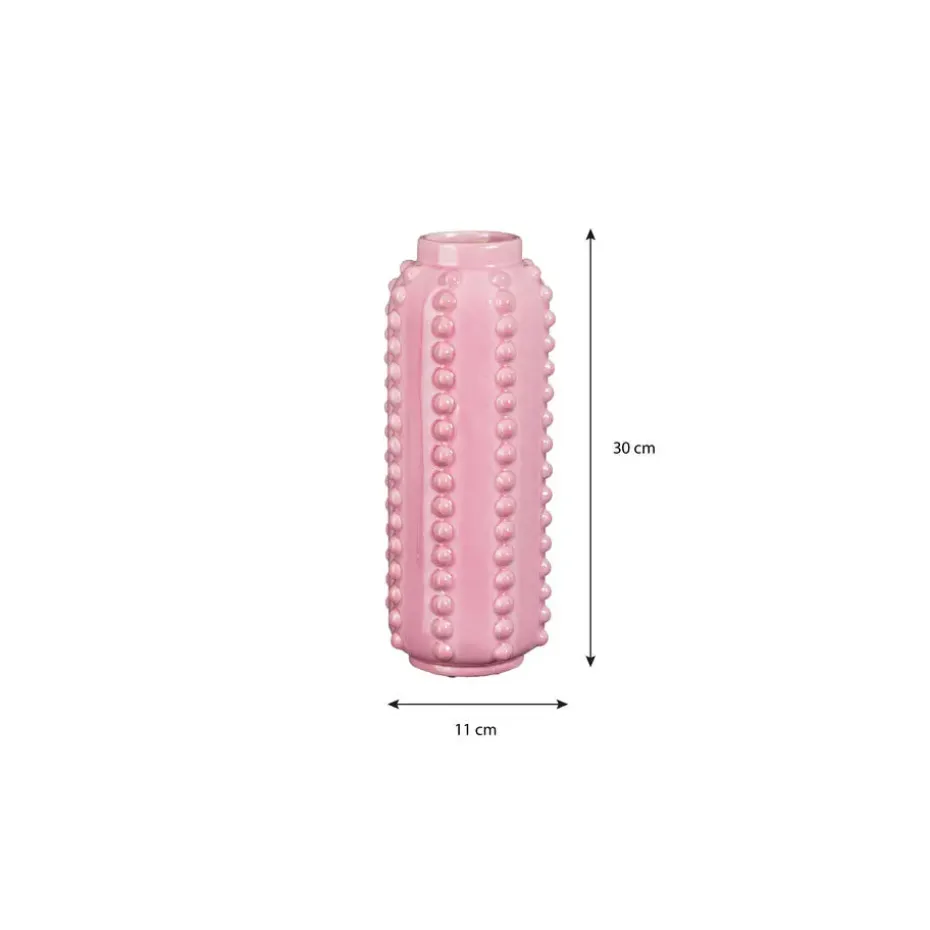 De Mica Decorations Bloemenvaas Boaz is een opvallend stuk dat karakter toevoegt aan elke ruimte. Met zijn opvallende, gebobbelde ontwerp en levendige roze kleur is deze bloemenvaas een perfecte aanvulling op moderne en eigentijdse interieurs. Met een afmeting van 30 x 11 cm is deze bloemenvaas ideaal voor het tentoonstellen van kleine tot middelgrote boeketten of zelfs als op zichzelf staand decoratief accent. Het hoogwaardige vakmanschap zorgt voor duurzaamheid en een verfijnde uitstraling. Of het nu in de woonkamer, slaapkamer of kantoor is, deze bloemenvaas voegt een vleugje stijl toe aan elke ruimte.