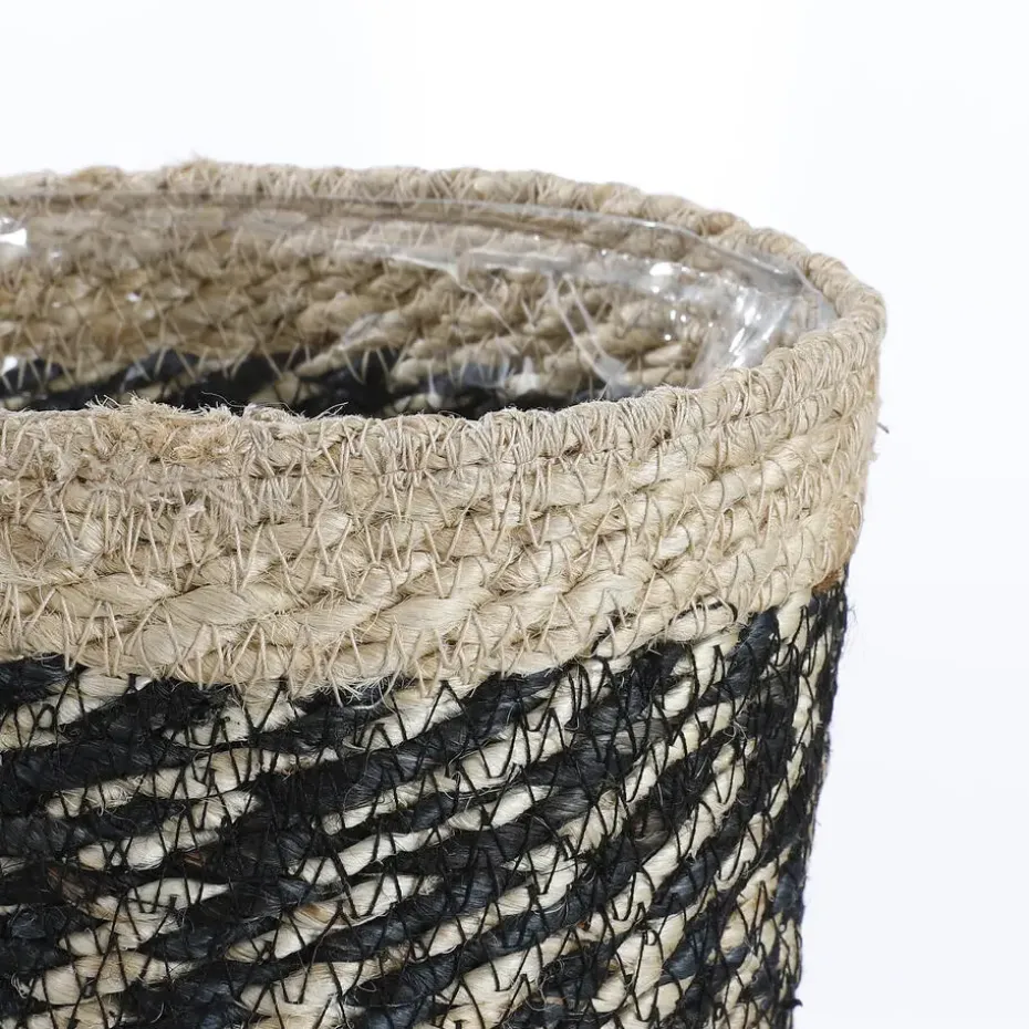 Plantenmand van H20 x Ø20 cmGemaakt van juteGevoerd met een plastic liner voor extra beschermingLeuk afgewerkt met een zwart-wit kleurenpatroonVoor een plant of om iets in op te bergenMand Bonaparte uit de collectie van Mica Decorations valt op door het speelse, zwart-witte design. De mand is gemaakt van sterke draden van jute en is erg stevig. Vanbinnen is hij gevoerd met een plastic liner, die zorgt voor extra bescherming. Hierdoor is de mand erg geschikt om als bloempot te gebruiken, of berg er wat dingetjes in op. De mand is verkrijgbaar in verschillende maten. Dit model is H20 x Ø20 cm.