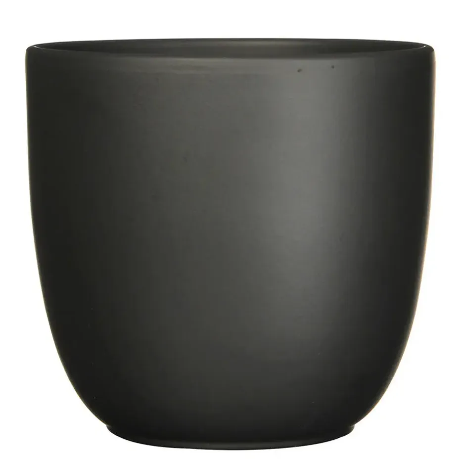 Plantenpot/bloempot van keramiek in de kleur zwart in strakke matte uitvoering. Diameter 31 cm en hoogte 28 cm. Mooie bloempotten voor binnen gebruik. Serie: Tusca. De bloempot met een prachtige mat finish aan de buitenzijde is van Duits keramiek. Tip: zet een schotel onder de pot, of plaats een binnenpot/hoes om eventueel lekken tegen te gaan. Potten van gebakken steen zijn niet altijd 100% waterdicht.