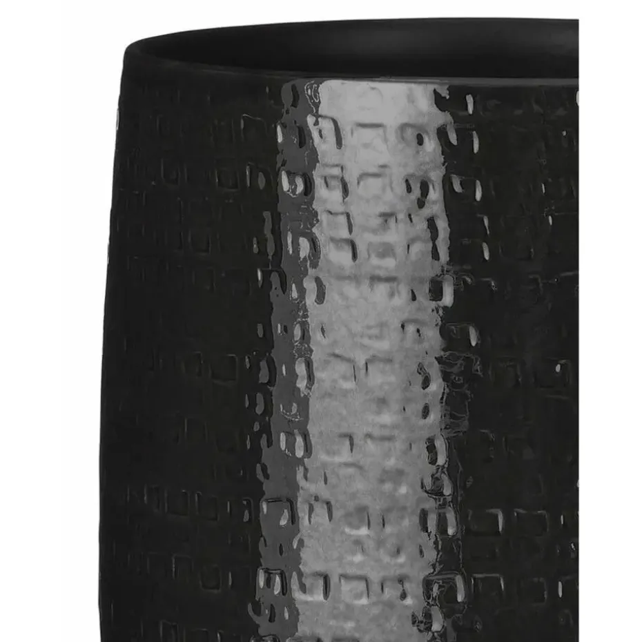 Plantenpot/bloempot van keramiek in de kleur zwart met een mooi relief patroon. Diameter 24 cm en hoogte 21 cm. Stijlvolle bloempotten voor binnen gebruik met een glanzende finish. Serie: Floyd. Het prachtige gedrukte patroon aan de buitenzijde is met de hand gemaakt in Portugal. Derhalve is geen pot exact hetzelfde en hebben de bloempotten een echt karakter.