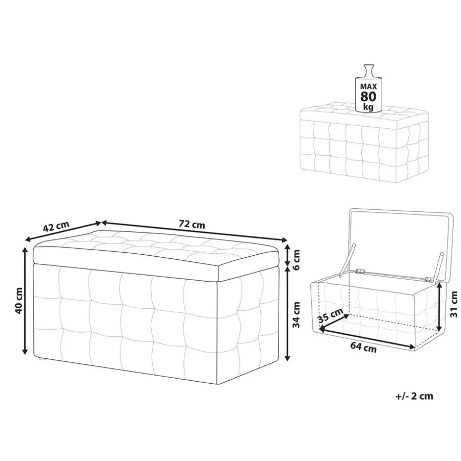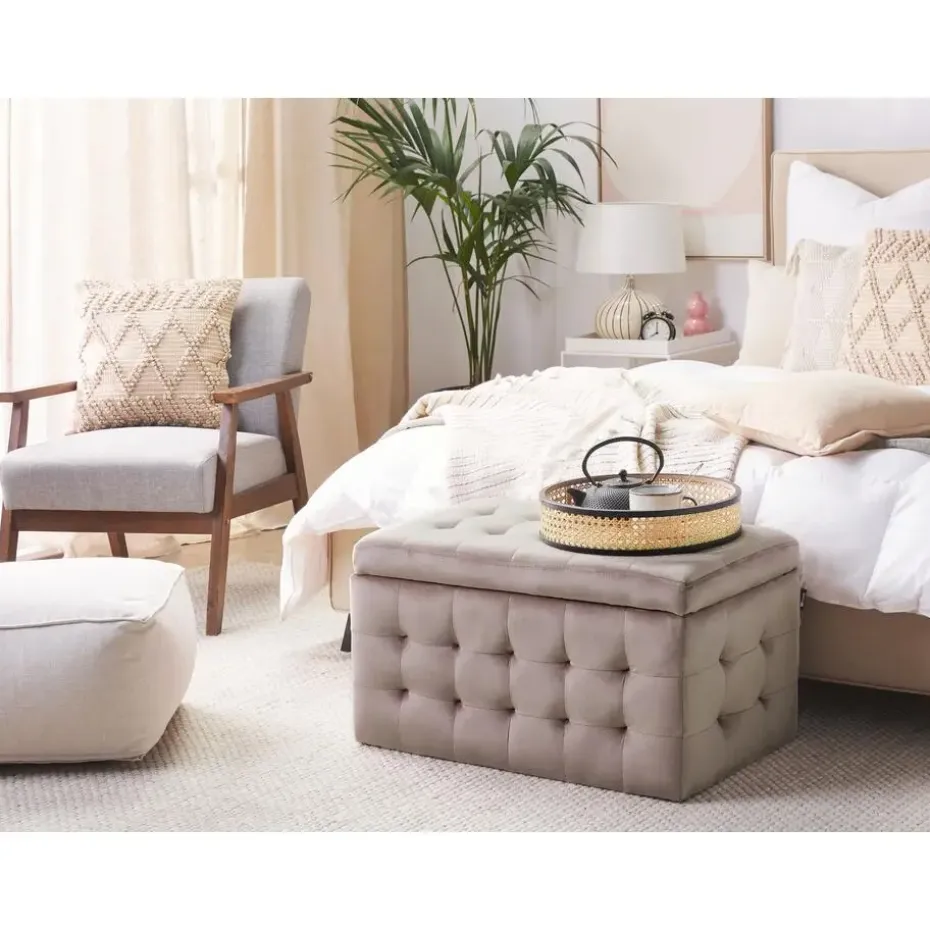 Belangrijkste eigenschappen: Met klassieke, getufte details, Zijdezacht, fluwelen stof, Meerdere toepassingsmogelijkheden, Functionele, grote opbergruimte, Beschermdoppen voor oppervlaktebescherming