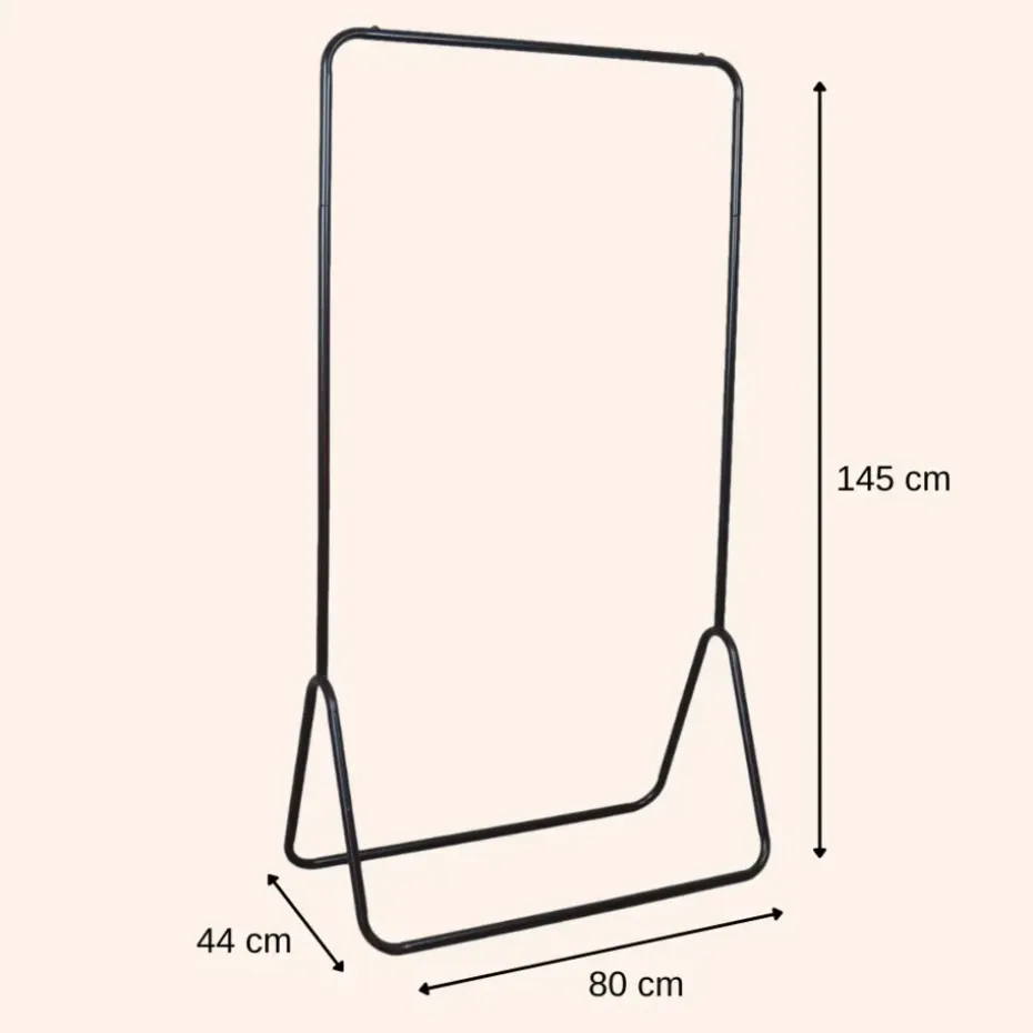 Het MISOU kledingrek is een stijlvolle manier voor het opbergen van jouw kleding. Hiermee hang je overzichtelijk al je kleding op. Het materiaal is metaal en de kleur is zwart. Met de afmetingen van 80 x 44 x 145 cm.