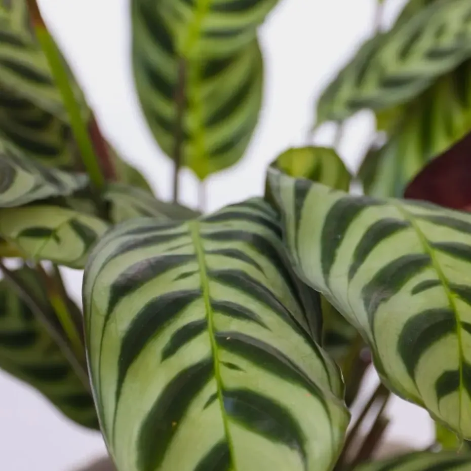 Ctenanthe Burle Marxii, Philodendron White Wave en Syngonium zijn tropische planten die gedijen in warme, vochtige omgevingen. Ze gedijen goed bij helder, indirect licht en moeten worden beschermd tegen direct zonlicht. Houd de grond vochtig maar niet doorweekt en zorg voor een hoge luchtvochtigheid door regelmatig te sproeien. Bemest tijdens het groeiseizoen en verminder de watergift in de winter. Verwijder regelmatig stof van de bladeren en controleer op plagen. Snoei dode of beschadigde bladeren voor een gezonde uitstraling en stimuleer nieuwe groei.