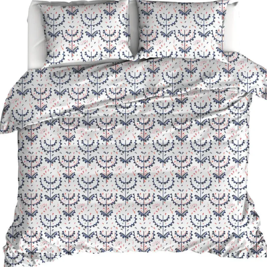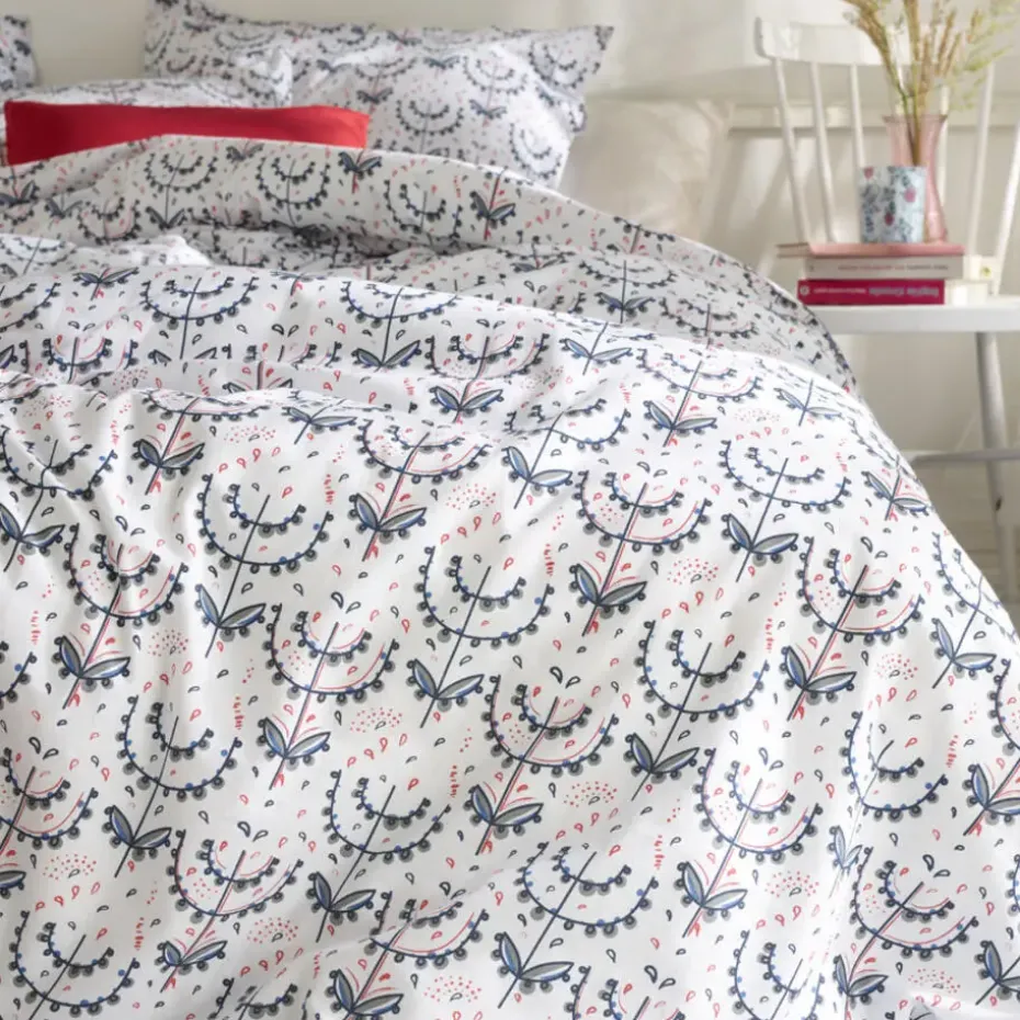 Moodit Dekbedovertrek, Odil Mia. Dit mooie dekbedovertrek in hotelmaat uit de Odil collectie van Moodit heeft een mooie fleurige print. Het overtrek past daarom uitstekend in een moderne of een romantische woonstijl. De print is aan beide zijden bedrukt en komt ook terug in de kussenslopen. Gemaakt van 100% katoen, wat bijdraagt aan een comfortabele nachtrust door de ademende en sterk vocht-absorberende eigenschappen. De Odil dekbedden zijn prima te combineren met de uni-color collectie Basil van Moodit. Mix and match en zet de sfeer naar jouw hand, altijd en overal!