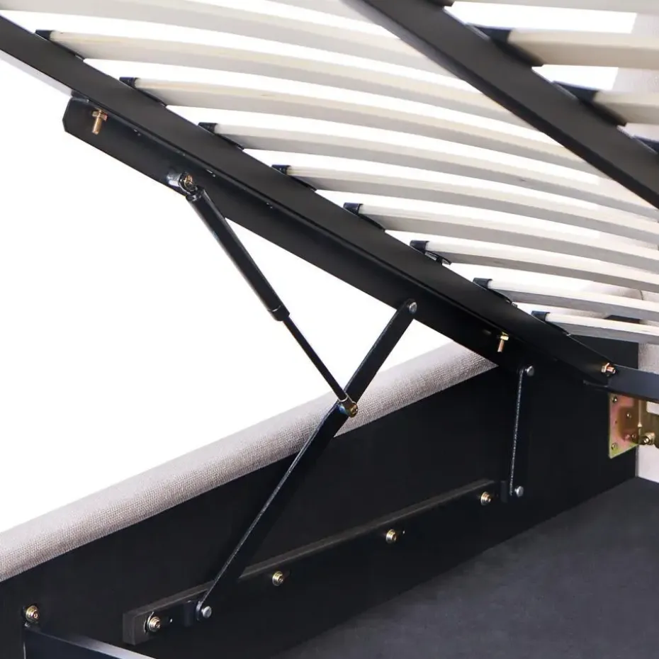 Belangrijkste eigenschappen: Schokabsorberende bedbodem voor goede ondersteuning, Stevig, duurzaam geïntegreerd frame, Minimalistisch, Scandinavische stijl, Past bij vele interieurstijlen, Hoogwaardige kwaliteit stoffering, Makkelijk te openen opbergvak door gasdrukveermechanisme