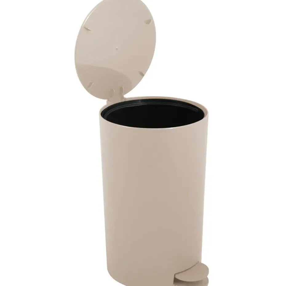 Pedaalemmer voor badkamer en toilet, klein model met inhoud 3 liter, kleur beige. Deze prullenbak is gemaakt van kunststof(polypropyleen) en heeft een formaat van ca. L15 x H27 cm. Deze kleine pedaalemmers hebben een uitneembare binnenbak. De deksel heeft dezelfde kleur. Robuust en makkelijk te legen. Afvalemmers, pedaalemmers en prullenbakken.