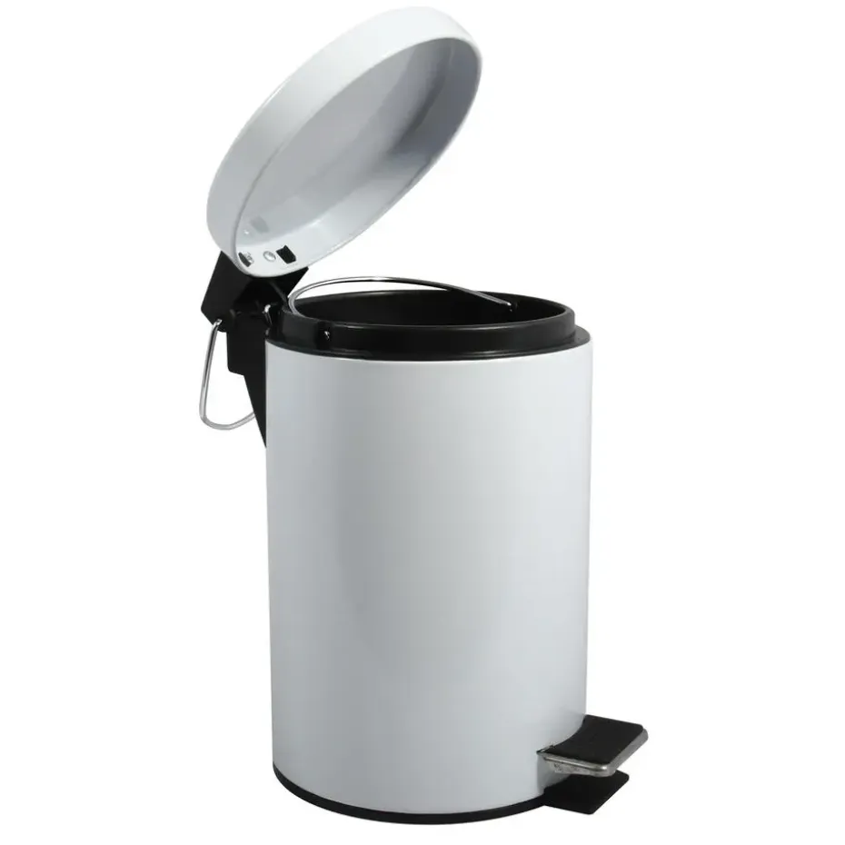 Pedaalemmer voor badkamer en toilet, klein model met inhoud 3 liter. Deze prullenbak is gemaakt van rvs en metaal en heeft een formaat van ca. L17 x H25 cm. Deze kleine pedaalemmers hebben een uitneembare binnenbak. De deksel is ook wit.