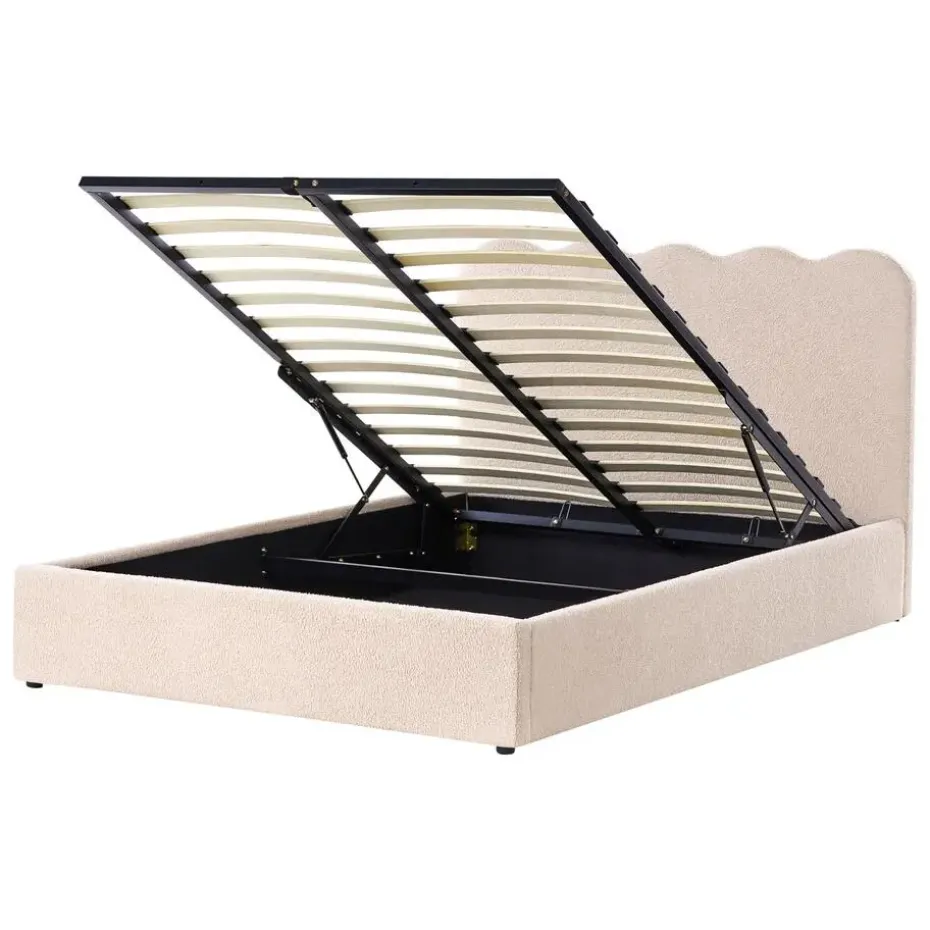 Belangrijkste eigenschappen: Schokabsorberende bedbodem voor goede ondersteuning, Stevig, duurzaam geïntegreerd frame, Minimalistisch, Scandinavische stijl, Past bij vele interieurstijlen, Hoogwaardige kwaliteit stoffering, Makkelijk te openen opbergvak door gasdrukveermechanisme