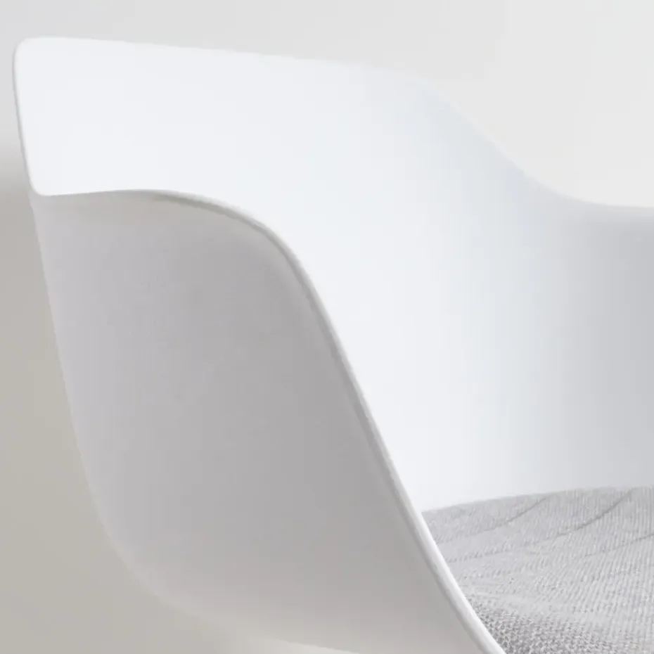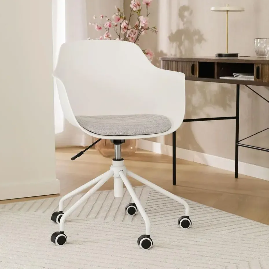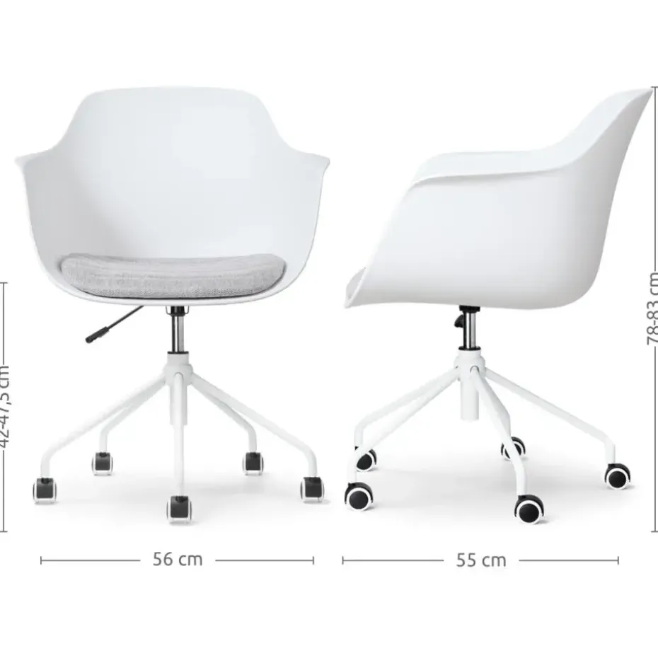 De zitting van de bureaustoel is verkrijgbaar in het kunststof en je kunt kiezen uit verschillende kleuren vaste zitkussens in de stoel. Bovendien heeft de zitting armleuningen, voor net nog iets meer comfort. Het onderstel is gemaakt van metaal en is in hoogte verstelbaar. Kortom, een moderne bureaustoel, waarin je ook lekker zit tijdens lange vergaderingen.