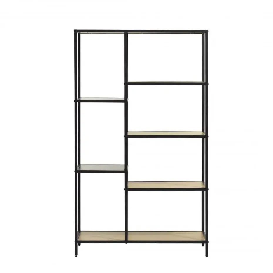 De Anita stellingkast is een stijlvolle toevoeging aan elk interieur. Met zijn open design en verschillende niveaus biedt hij voldoende ruimte voor het opbergen van diverse spullen. De natuurlijke houten legplanken in combinatie met het zwarte frame zorgen voor een mooie en moderne uitstraling. Met een hoogte van 146 cm is deze stellingkast een praktische en decoratieve oplossing voor het opbergen van al je spullen. Maak kennis met de veelzijdige Anita serie en haal een uniek en functioneel meubelstuk in huis.