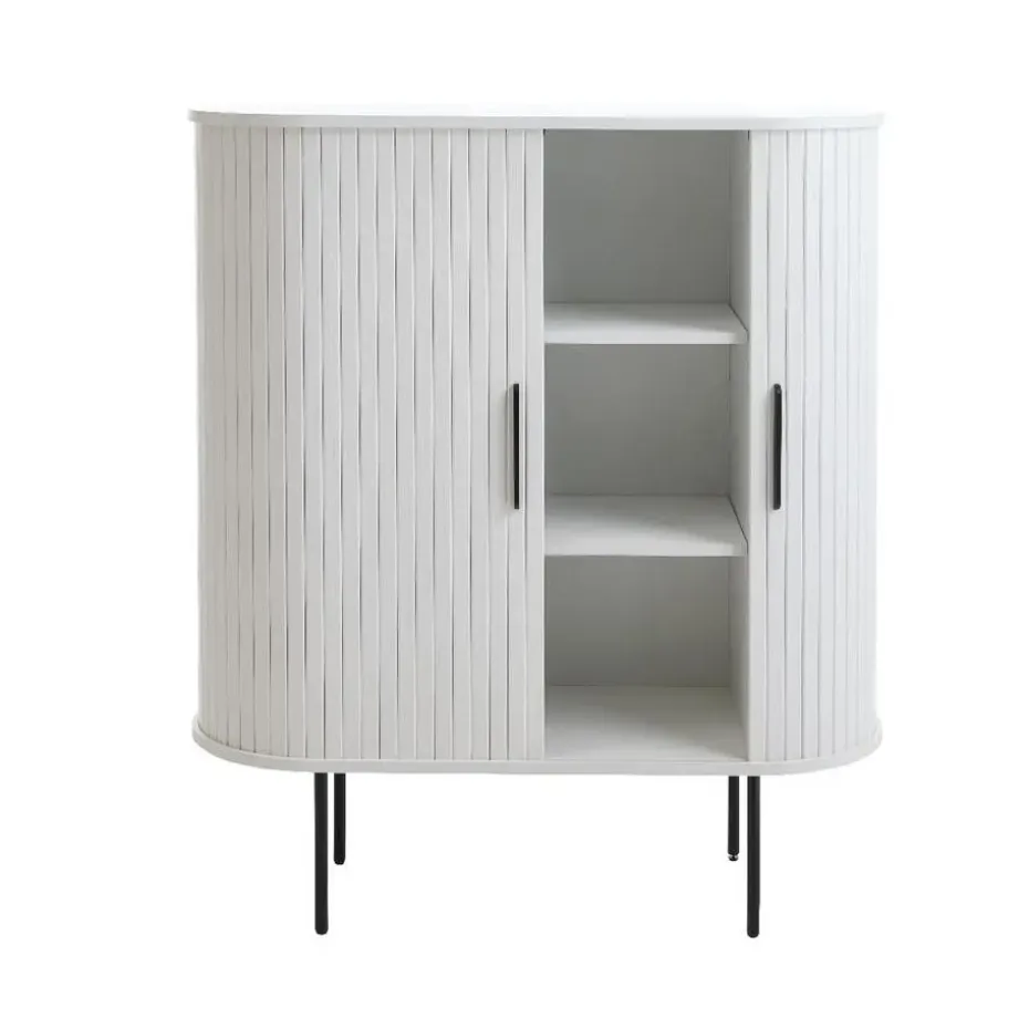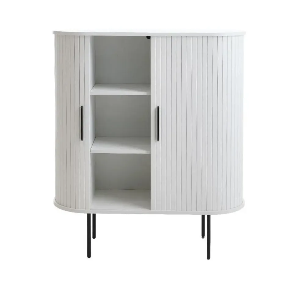 De Kelly wandkast van Nordic Home is een frisse en luchtige toevoeging aan je interieur. Het witte houten frame geeft een licht en ruimtelijk gevoel, terwijl de open vakken en deuren zorgen voor een mooie balans tussen opbergen en tentoonstellen. Ideaal voor boeken of woondecoratie.