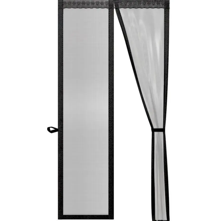 Plak het deurgordijn voorzichtig op het klittenband en zorg ervoor dat het niet te strak gespannen zit. Een te strak gespannen hor kan ervoor zorgen dat de magnetische sluiting niet optimaal werkt.