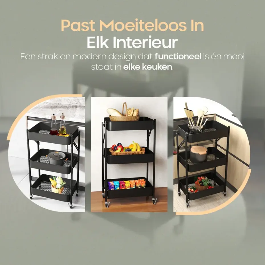 Hoewel ontworpen voor de keuken, is de O’DADDY® Inklapbare Trolley ook perfect voor andere ruimtes in huis. Gebruik het als extra opbergruimte in de woonkamer, als serveerwagen tijdens feestjes, of zelfs als mobiele werkplek. De mogelijkheden zijn eindeloos dankzij het flexibele ontwerp.