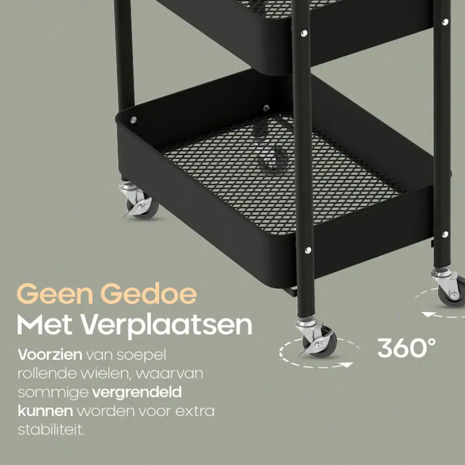 De trolley is eenvoudig te monteren met de meegeleverde instructies. Het metalen oppervlak is gemakkelijk schoon te maken, waardoor het onderhoud minimaal is en je keuken hygiënisch blijft.