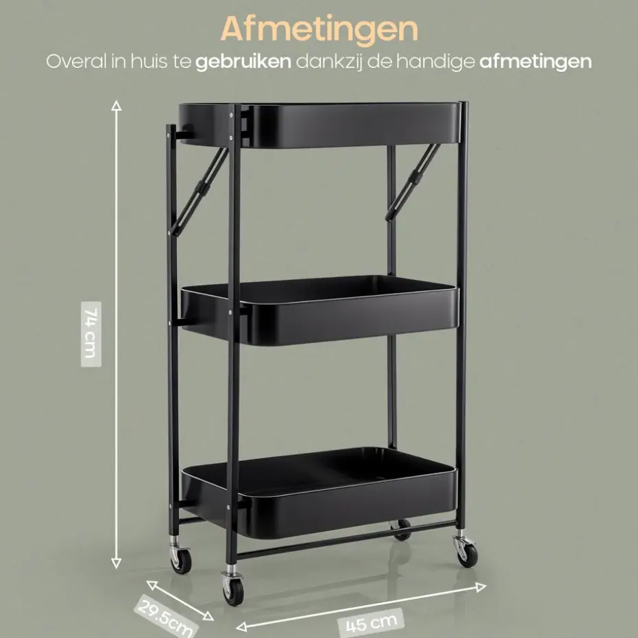 De O’DADDY® Keukentrolley is ontworpen met het oog op efficiëntie. Het inklapbare ontwerp maakt het mogelijk om de trolley snel op te bergen, ideaal voor kleinere keukens of wanneer extra ruimte gewenst is. Uitgeklapt biedt het een stabiel en ruim oppervlak voor al je keukenbenodigdheden.