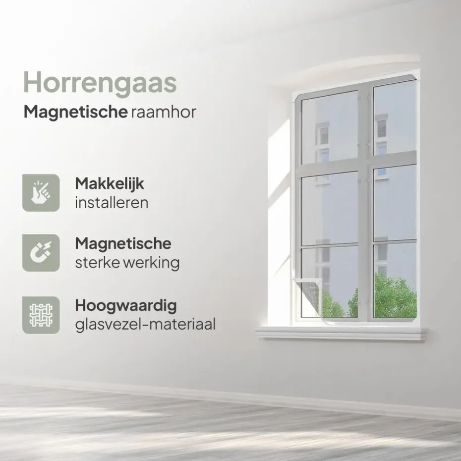 Niets is vervelender dan in je bed liggen en het gezoem van een mug of vlieg horen. Maar slapen met een raam dicht terwijl het heel warm is ook geen uitkomst. Wij hebben hiervoor DE oplossing. Onze magnetische raamhor houdt de muggen buiten en is ook nog eens supermooi afgewerkt. Omdat deze magnetisch is kunnen we de ramen makkelijk opendoen en hoef je alleen de hor los te laten waardoor de hor automatisch sluit.