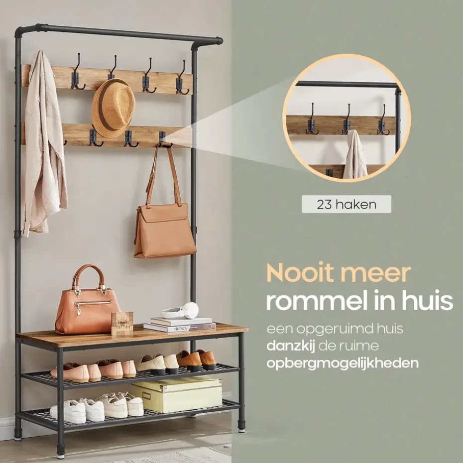 - 23 haken bieden voldoende ruimte voor jassen, sjaals en hoeden.