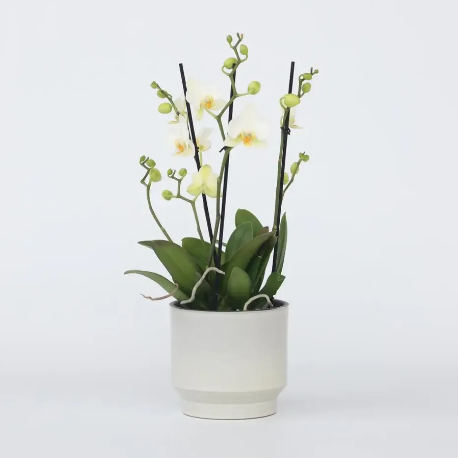De Phalaenopsis heeft een voorkeur voor een minimale nachttemperatuur van 16°C en een maximale dagtemperatuur van 32°C. De ideale dagtemperatuur ligt tussen de 20 en 22°C. Zet de orchidee op een lichte plek, maar zonder direct zonlicht, zeker in de zomermaanden. Worden de bladeren geel? Waarschijnlijk krijgt de plant te veel direct zonlicht. Afvallende bloemknoppen of donkergroene bladeren duiden daarentegen op een gebrek aan licht. Giet het water voor de orchidee niet in het hart van de plant, maar op de aarde in de pot. Beter nog is om de pot een minuutje in een emmer onder te dompelen. Dan kan de orchidee gerust zeven dagen zonder water. Gebruik bij voorkeur speciale orchideeënpotgrond.