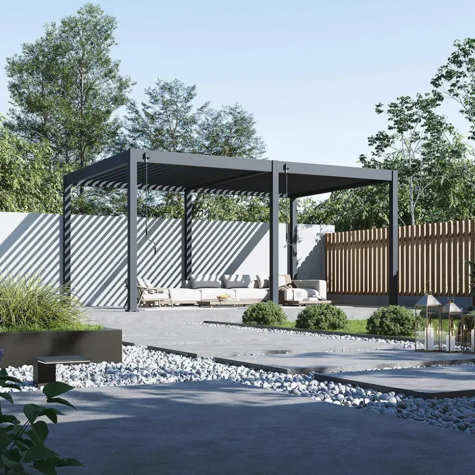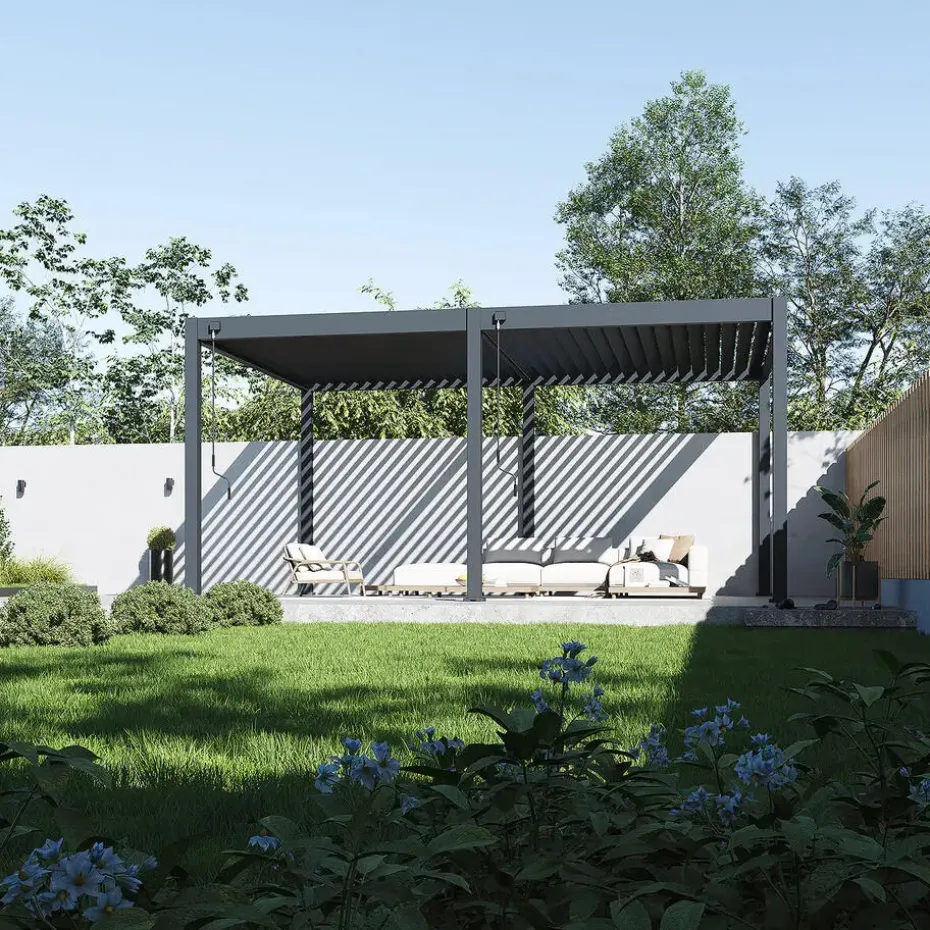 Je Orion Deluxe pergola uitbreiden met accessoires? Dat kan! Met het Pull Down Zijscherm of het Louvre Shutter paneel zit je heerlijk in de schaduw en beschut tegen de wind. Daarnaast zorgen deze accessoires ook voor meer privacy. Door het unieke ontwerp bevestig je het zijscherm en het paneel volledig geïntegreerd in jouw pergola.