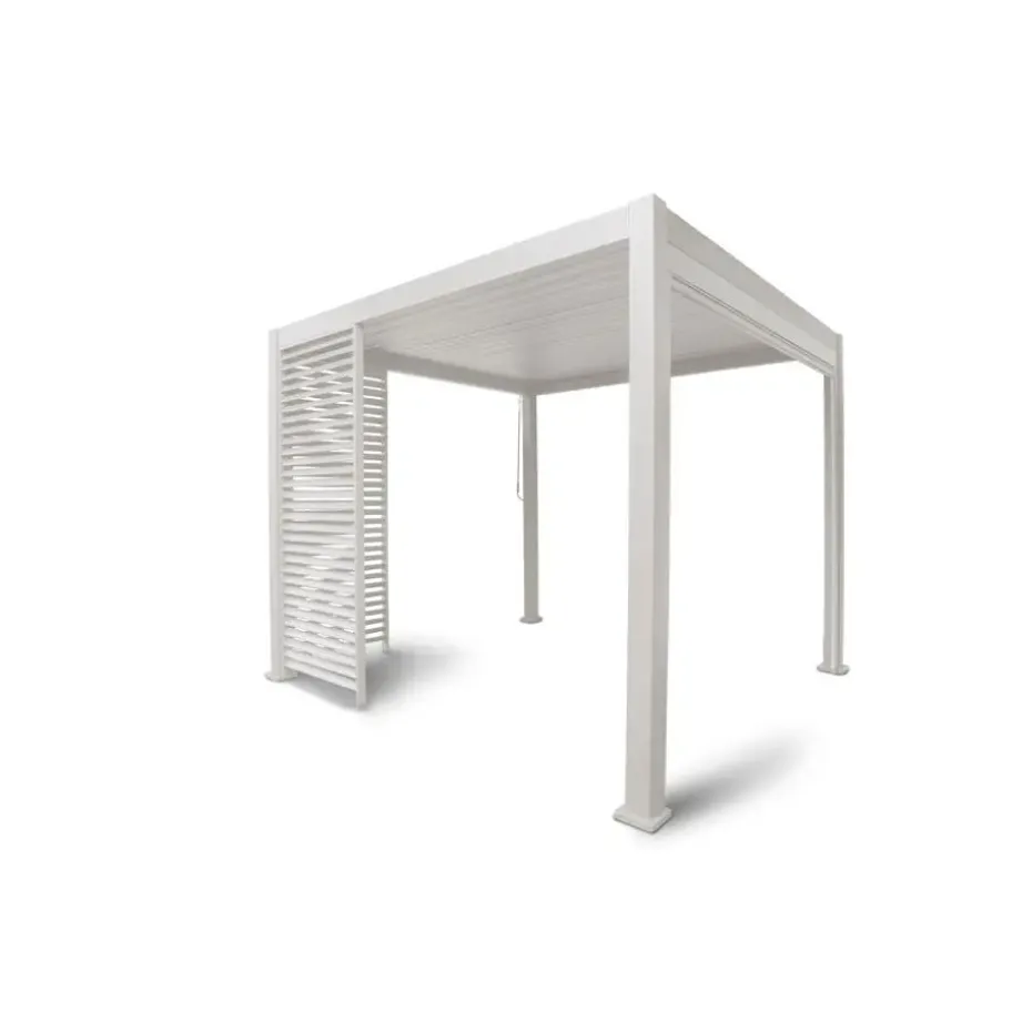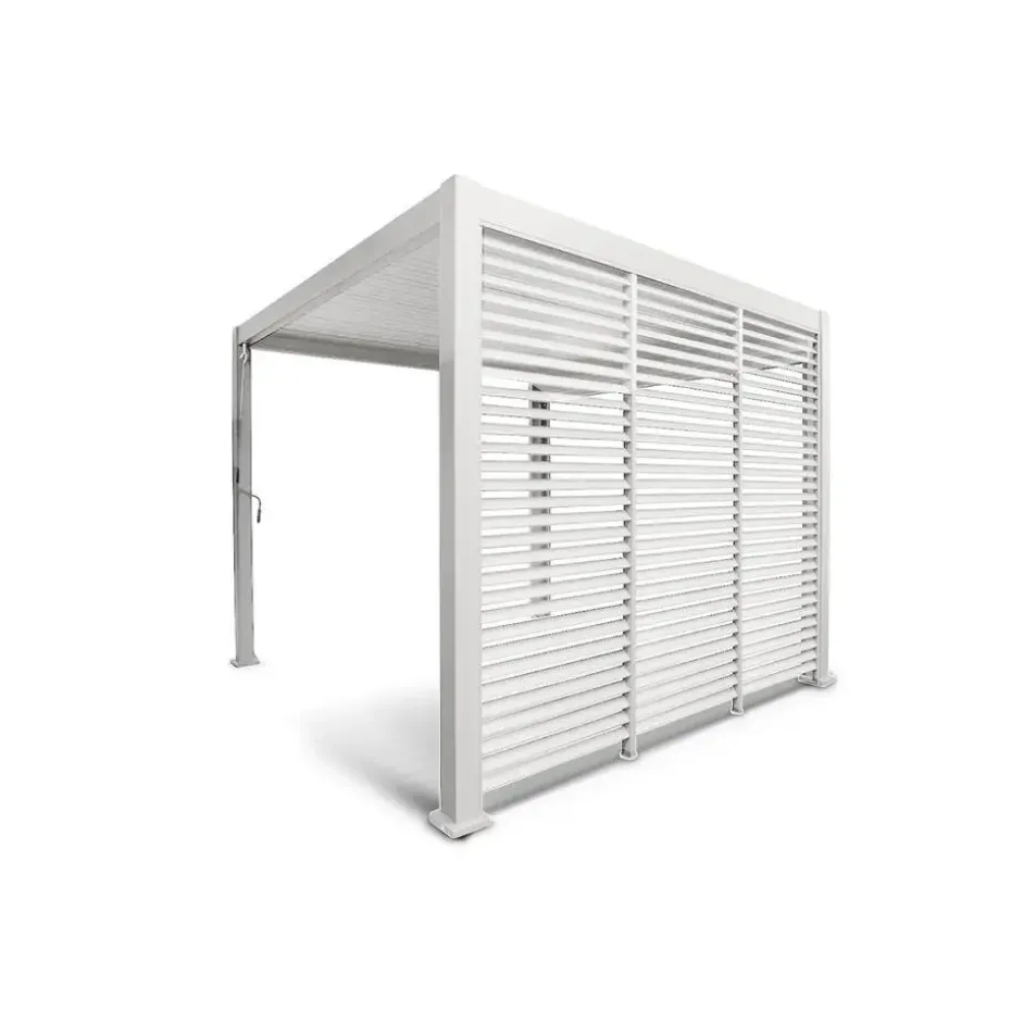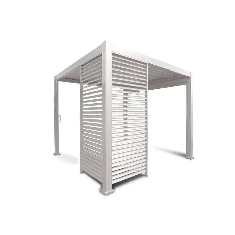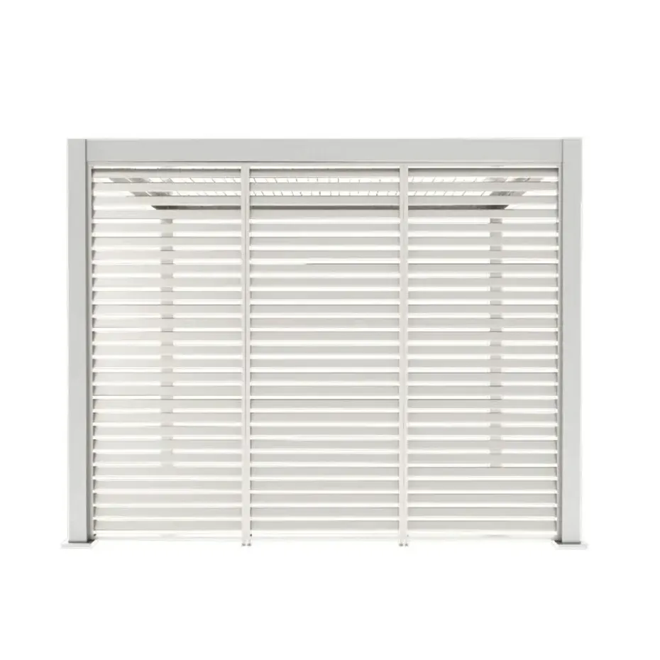 Orion shutterpaneel – Vast – Horizontaal – 123 cm – Voor 4 meter zijkant – WitDit Orion Louvre shutter paneel is een echte aanwinst voor jouw Orion overkapping. Met dit shutter paneel zorg je voor meer privacy, zit je beschut tegen de wind en heb je geen last van een laaghangende zon. Door het unieke ontwerp bevestig je het zijscherm volledig geïntegreerd in jouw pergola. Met de meegeleverde handleiding is het monteren van het shutter paneel zeer eenvoudig. De shutters van het shutter paneel zitten vast aan het paneel, deze zijn dus niet te kantelen. Het paneel is gemaakt van aluminium. De panelen worden per stuk geleverd. Je hebt 3 panelen nodig om een kant van 4 meter volledig af te dekken. Deze panelen zij modulair. Dit houdt in dat je de panelen op elke kant kan plaatsen zoals je dit wilt.