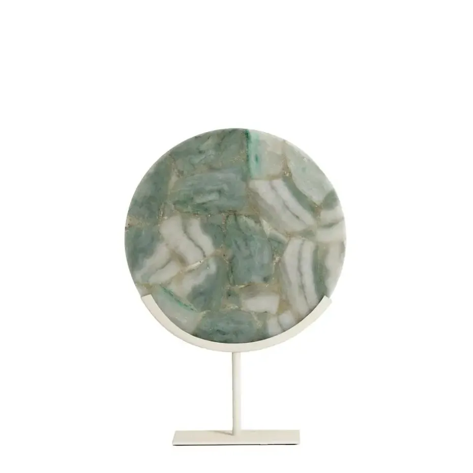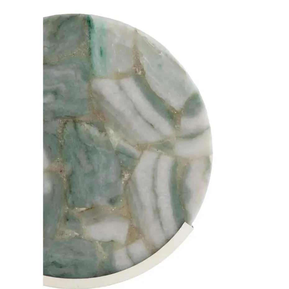 - Groen met beige travertin met goudkleurige ijzeren voet.