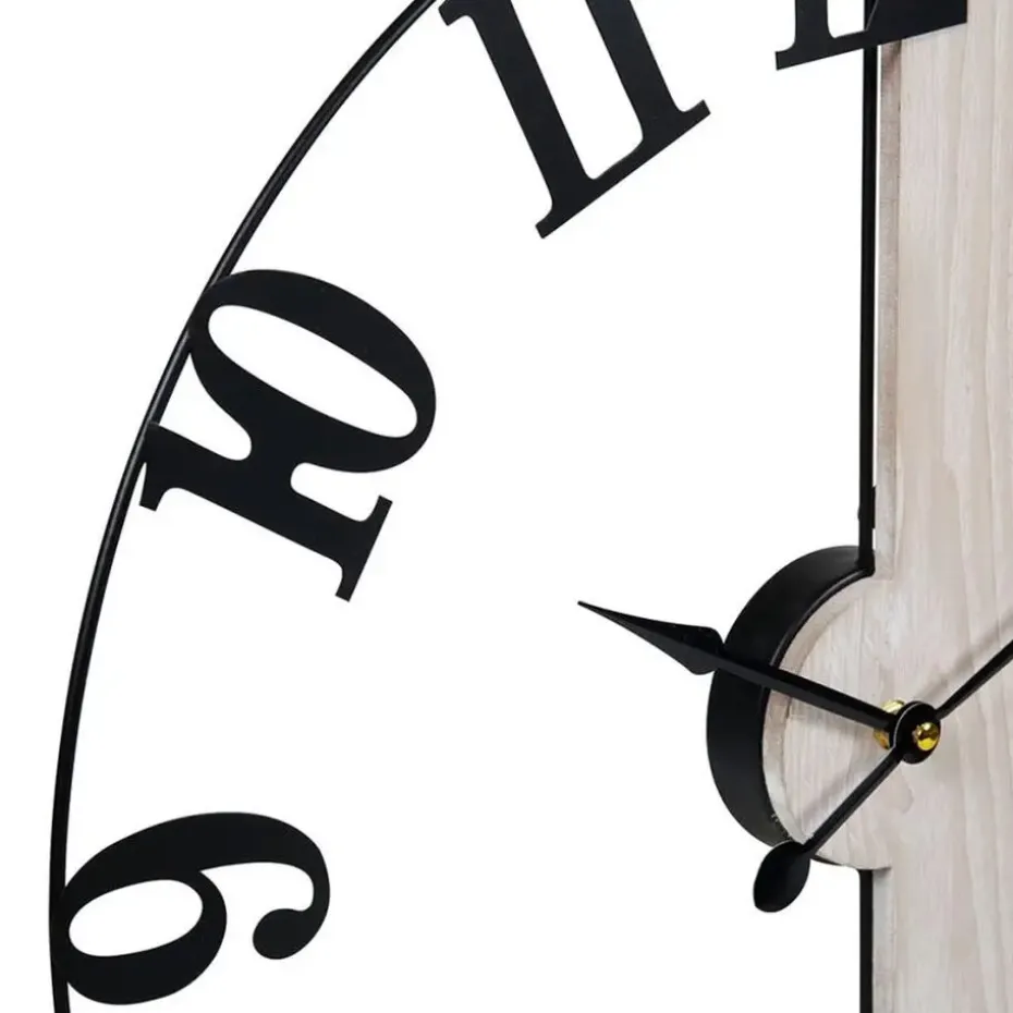 Ostaria Wandklok/muur klok – Dia 50 cm – metaal/hout – naturel/zwart – keuken/kamer.