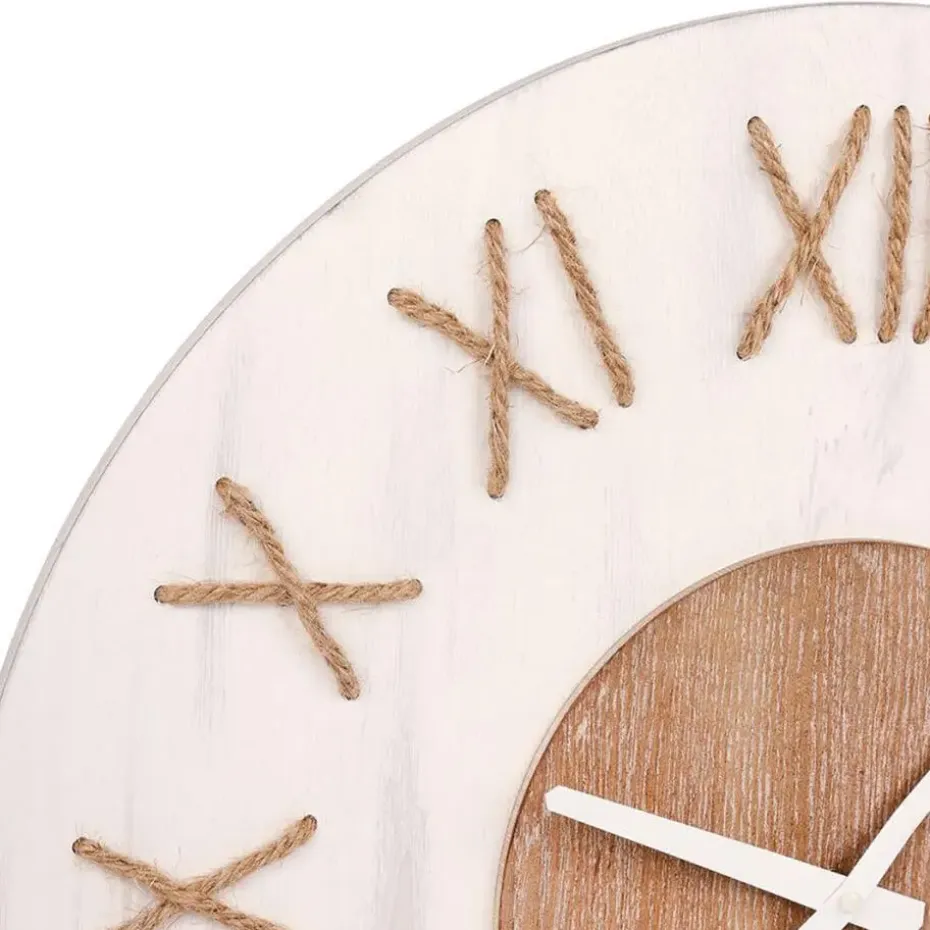 Deze Ostaria wandklok brengt direct een vleugje zeebries in huis. Met zijn witte MDF-achtergrond, bruine accenten en opvallende touwcijfers straalt hij een maritieme, rustieke sfeer uit. De Romeinse cijfers zijn gemaakt van echt touw en geven de klok een speelse, natuurlijke uitstraling. Gemaakt van FSC® gecertificeerd MDF, stijlvol en verantwoord. Perfect voor in de keuken, woonkamer of strandhuis! Voeding: AA batterij ( niet inbegrepen).