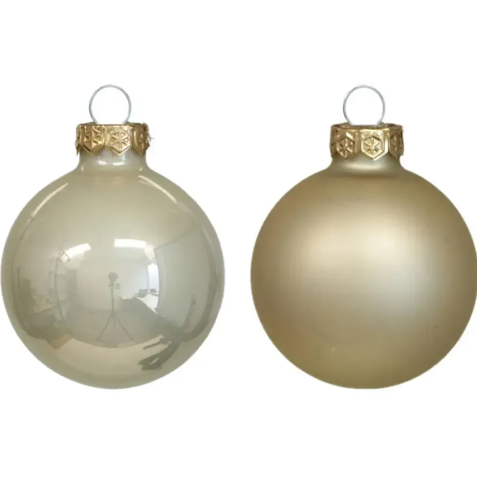 Kerstballen in de kleur champagne met glans/mat afwerking. Deze kerstballen zijn van glas en hebben een milieubewuste verpakking. Formaat kerstballen: D6 cm. De verpakking van deze kerstballen kunt u in zijn geheel (ook het venster) bij het oud papier weggooien. Kerst versiering/decoratie voor het optuigen van uw kerstboom. Onze kerstballen worden standaard geleverd met ophangdraadjes maar wij adviseren u om onze kerstbalhaakjes mee te bestellen (niet inbegrepen). Materiaal: glas.LET OP! 4 van de 30 kerstballen ontvangt u reeds gratis om eventuele transportschade te dekken.