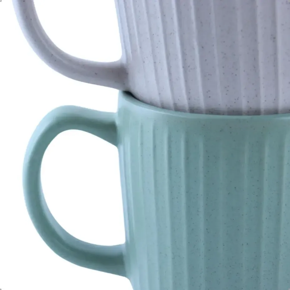 Gemaakt van hoogwaardig aardewerk, stralen de mokken een tijdloze charme uit. De natuurlijke kleuren en het subtiele reactieve glazuur van de AURORA-serie geven elk kopje een uniek karakter. Dankzij de comfortabele oorvorm liggen de mokken prettig in de hand, terwijl het dikke aardewerk de warmte goed vasthoudt.