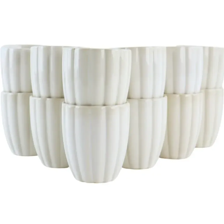 Geniet van je favoriete warme dranken met de OTIX Koffiekopjes zonder Oor, een set van 12 stijlvolle theekopjes. Deze elegante mokken zijn perfect voor thee, espresso of kleine porties koffie. Met een inhoud van 120 ml en een modern ribbeldesign zijn ze niet alleen functioneel, maar ook een mooie aanvulling op je tafelsetting.