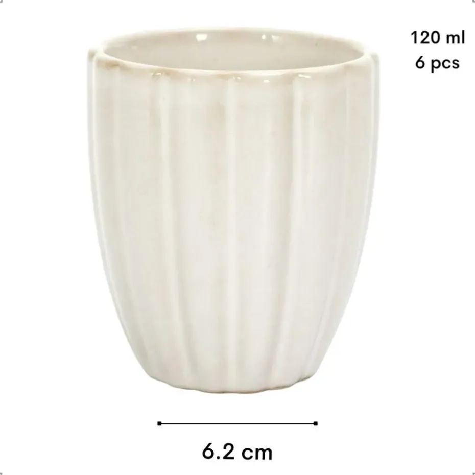 Geniet van je favoriete warme dranken met de OTIX Koffiekopjes zonder Oor, een set van 6 stijlvolle theekopjes. Deze elegante mokken zijn perfect voor thee, espresso of kleine porties koffie. Met een inhoud van 120 ml en een modern ribbeldesign zijn ze niet alleen functioneel, maar ook een mooie aanvulling op je tafelsetting.