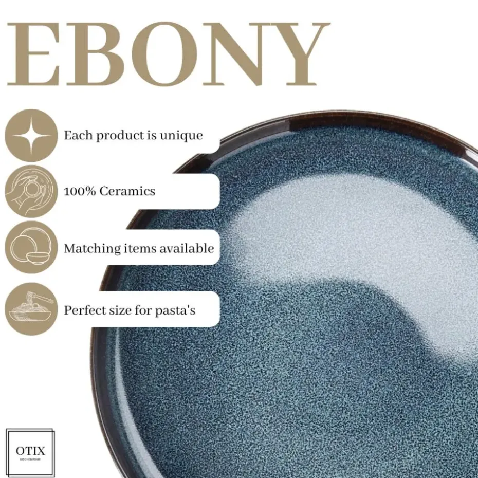 De OTIX Ontbijtborden Bordenset uit de “EBONY” collectie is een set van zes stijlvolle borden, ideaal voor het serveren van ontbijt, desserts, of kleine maaltijden. Deze borden, met een diameter van 21 cm, zijn uitgevoerd in een elegante blauwe tint en vervaardigd uit hoogwaardig aardewerk.