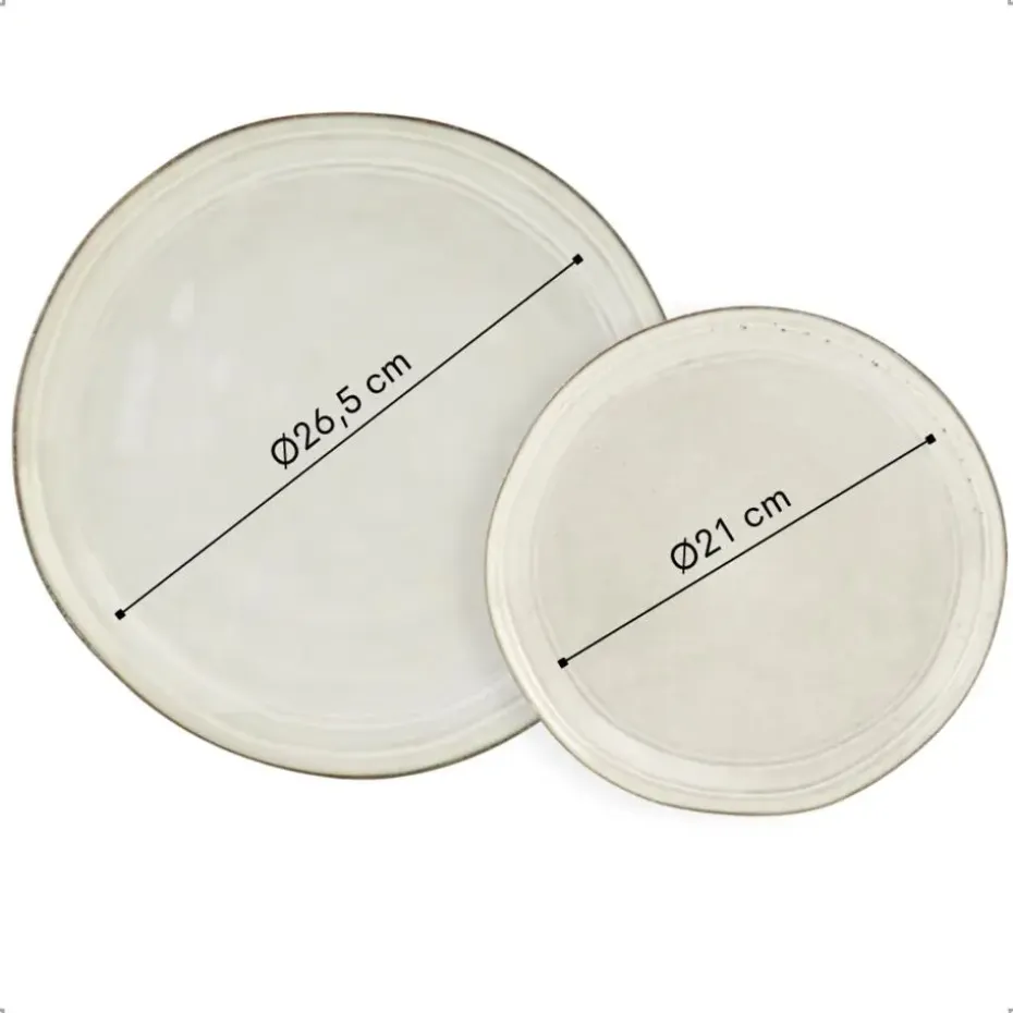 Voeg een vleugje verfijning toe aan je tafel met de OTIX Diner- en Dessertbordenset. Deze 12-delige set is gemaakt van hoogwaardig aardewerk in een elegante beige kleur en biedt de perfecte balans tussen stijl en functionaliteit. De Dinerborden van 26,5 cm en Dessertborden van 21 cm zijn ideaal voor het serveren van hoofdgerechten en zoetigheden.
