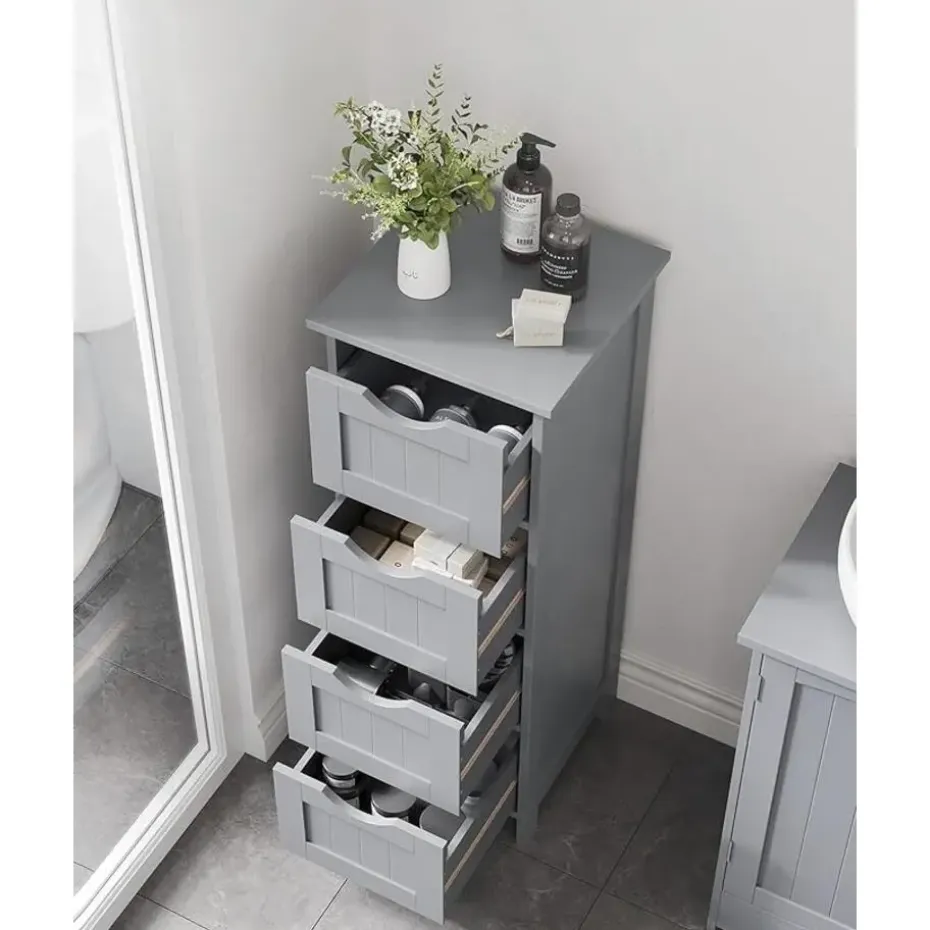 De Parya Home badkamerkast is de perfecte oplossing voor extra opbergruimte zonder in te leveren op stijl. Met 4 ruime lades biedt deze kast voldoende plek voor handdoeken, toiletrollen, parfum en andere badkamerbenodigdheden. Dankzij het compacte formaat van 30 x 30 x 82 cm neemt hij nauwelijks vloeroppervlak in beslag, ideaal voor kleinere badkamers en ruimtes.