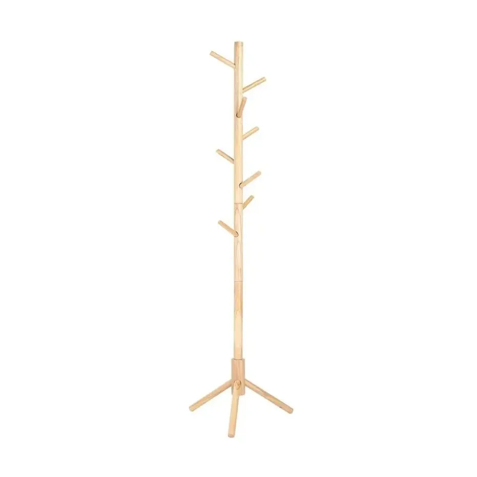 Deze kapstok is gemaakt van 3,8 cm dik massief hout, wat zorgt voor een stevige en robuuste constructie. De natuurlijke houtkleur voegt een warme en frisse uitstraling toe aan je interieur en past moeiteloos in elke hal, slaapkamer of kantoor.