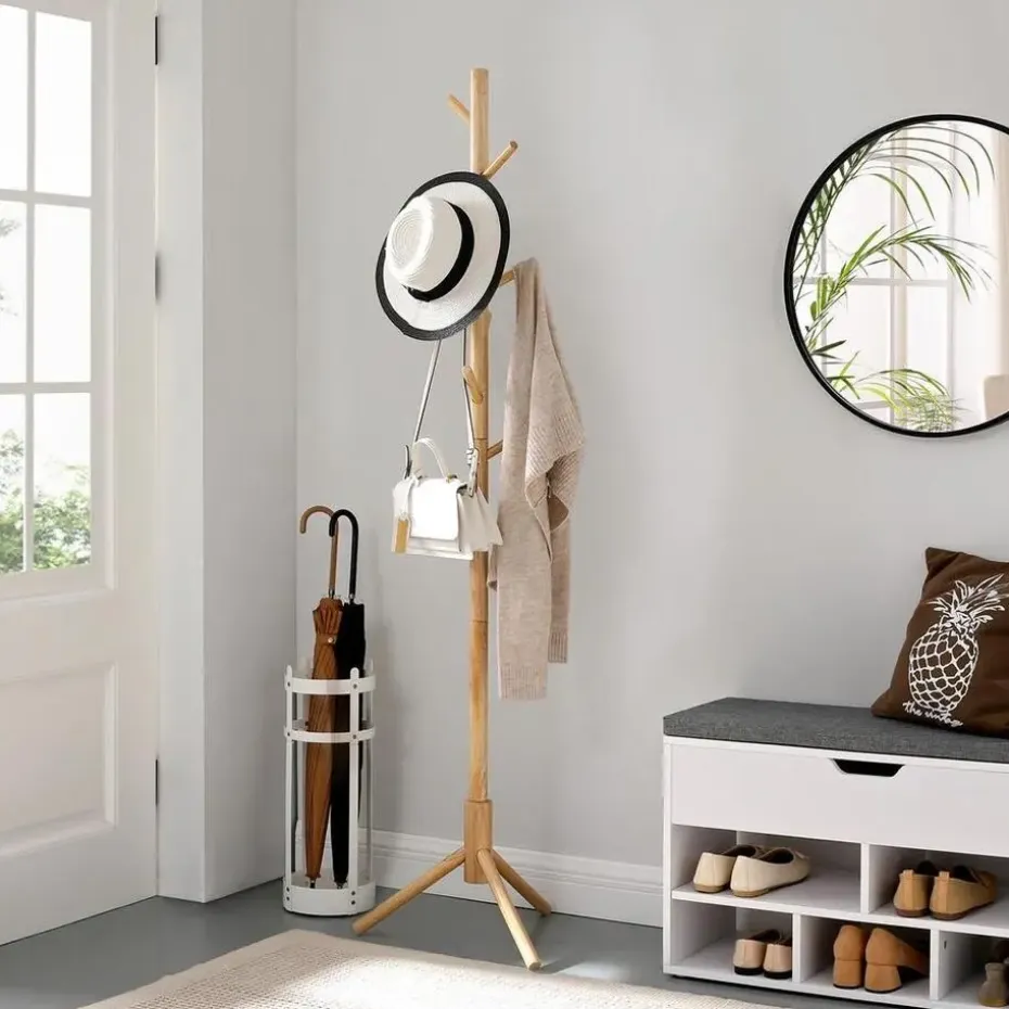 Met afmetingen van 47 x 47 x 175 cm is deze kapstok perfect voor kleinere ruimtes. De 8 stevige haken bieden voldoende ophangruimte voor jassen, tassen en sjaals, zodat je entree netjes en georganiseerd blijft.