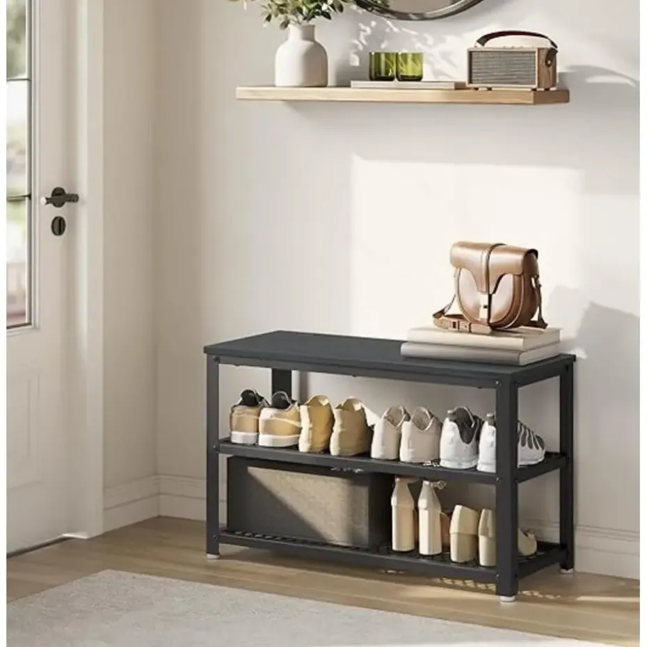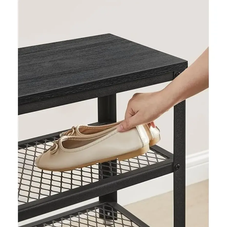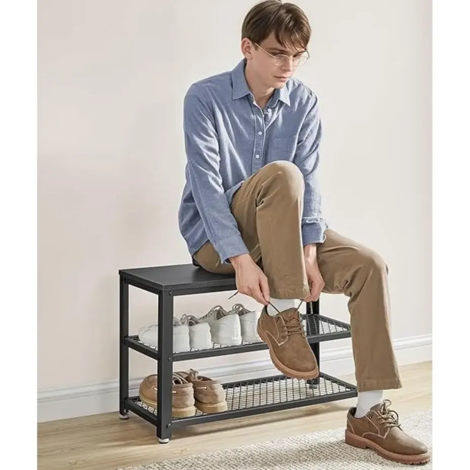 Deze stevige schoenenbank is vervaardigd uit hoogwaardige spaanplaat en een sterk metalen frame, waardoor hij tot 90 kg kan dragen. Perfect om op te zitten terwijl je je schoenen aantrekt, of om even comfortabel te wachten op je gezelschap.