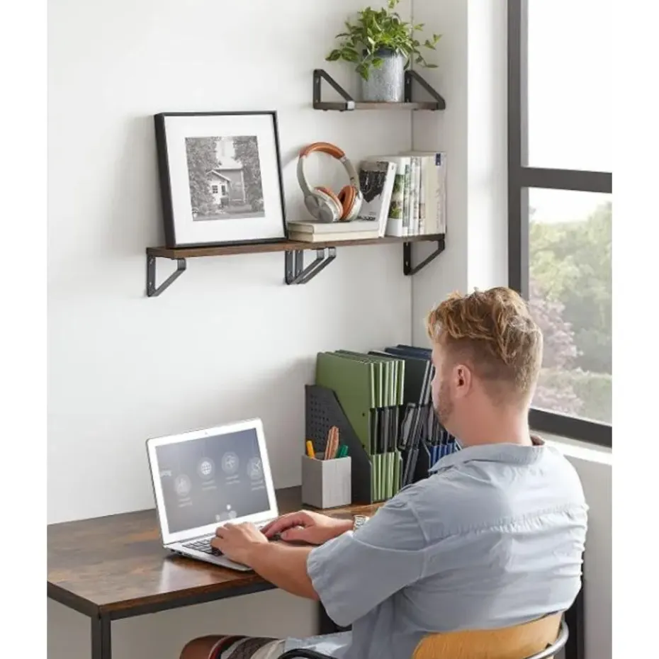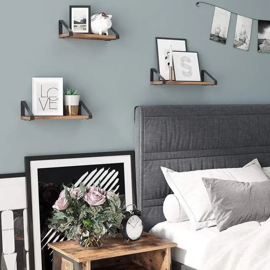 Als je een aantal leuke decorstukken hebt gekocht om je huis op te fleuren, dan zullen deze zeker passen op deze mooie set van 3 wandplanken. De planken hebben een rustieke vintage stijl en een zwart metalen frame.