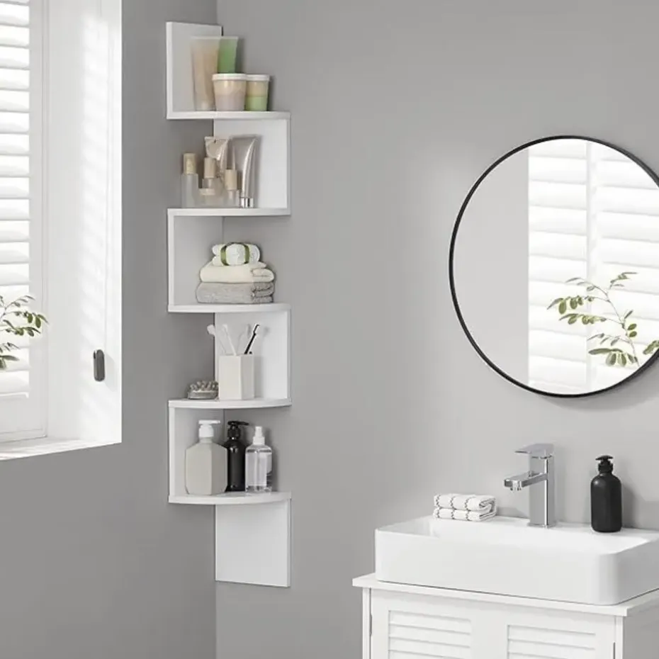Geef uw interieur een verfijnde upgrade met de Parya Home zwevende hoekplank. De unieke zigzagvorm, elegante wolkwitte kleur en subtiel gebogen planken zorgen voor een moderne en charmante uitstraling. Perfect voor uw woonkamer, badkamer of thuiskantoor.