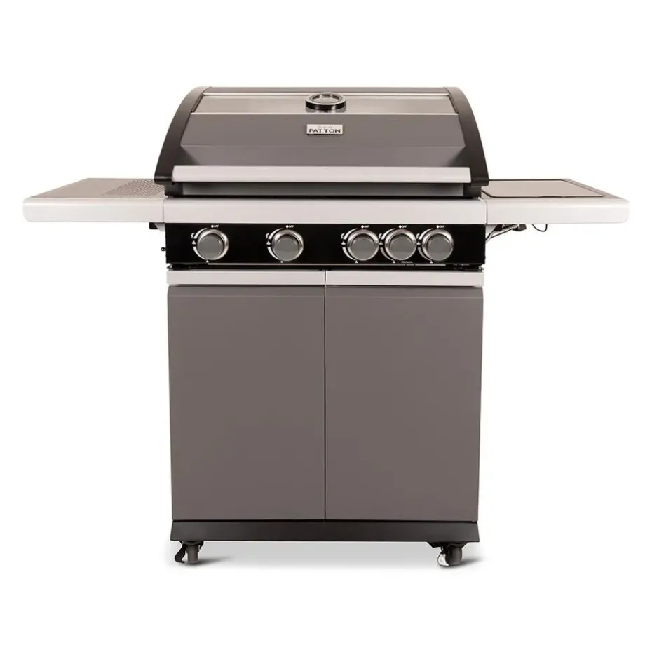 De Patton Patio Pro Chef 4+1 is niet alleen praktisch in gebruik, maar ook gemakkelijk te verplaatsen dankzij de degelijke metalen gelagerde wielen. Het gesloten kabinet biedt voldoende opbergruimte voor de gasfles, en de automatische ontsteking maakt het starten van de barbecue snel en eenvoudig. Het warmhoudrek biedt extra flexibiliteit: je kunt er gerechten op leggen die je warm wilt houden zonder verder te garen, zodat alles perfect op temperatuur blijft tot het moment van serveren.