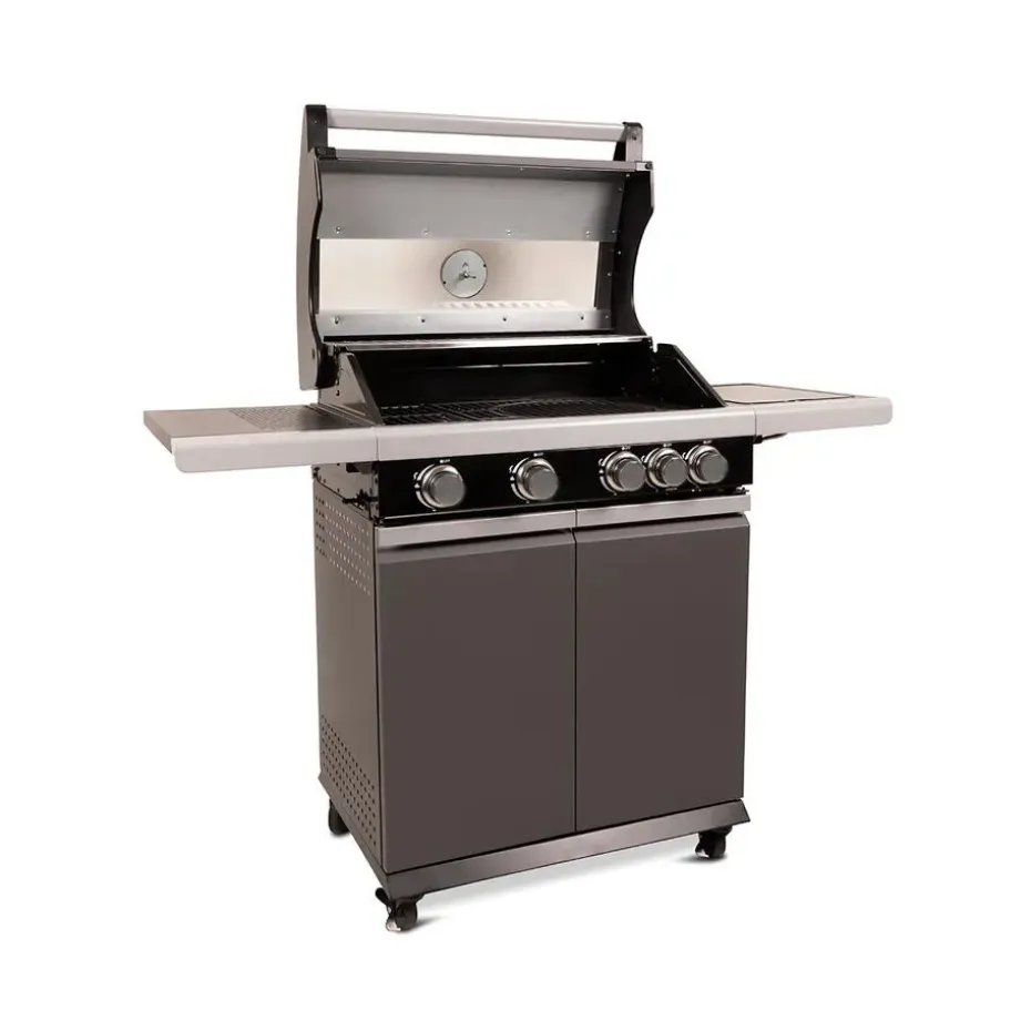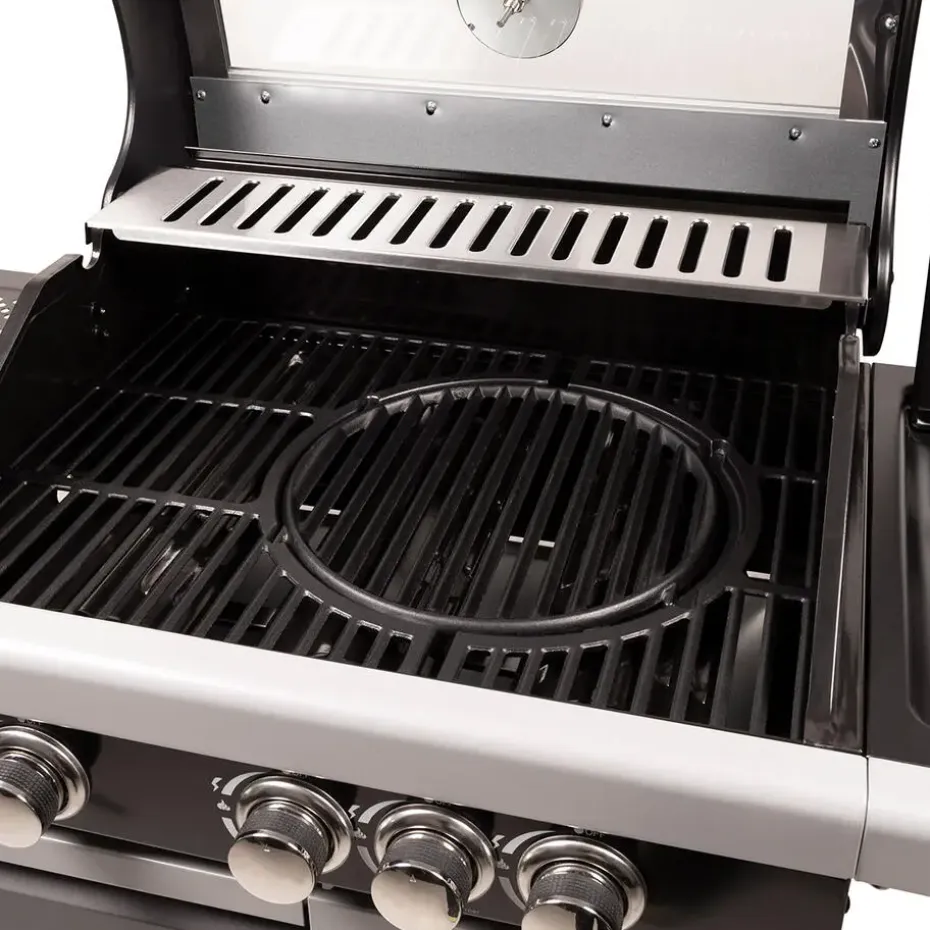 Met het professionele gietijzeren multi grillrooster kun je rekenen op een gelijkmatige warmteverdeling en een gemakkelijke reiniging na gebruik. De zijbrander is ideaal voor het bereiden van sauzen of andere bijgerechten, terwijl de temperatuurregeling eenvoudig te maken is dankzij de ingebouwde thermometer in de deksel en de goed geplaatste ventilatieroosters.
