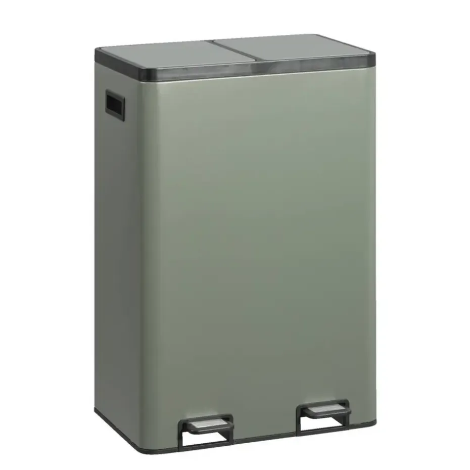 Pedaalemmer Duo is een groene metalen prullenbak met een totale inhoud van 60 liter, verdeeld over twee bakken. Deze afvalbak heeft een rustieke uitstraling dankzij de groene kleur in combinatie met metaal. De afvalbak heeft een mooi neutraal design voor in je keuken of bijkeuken.