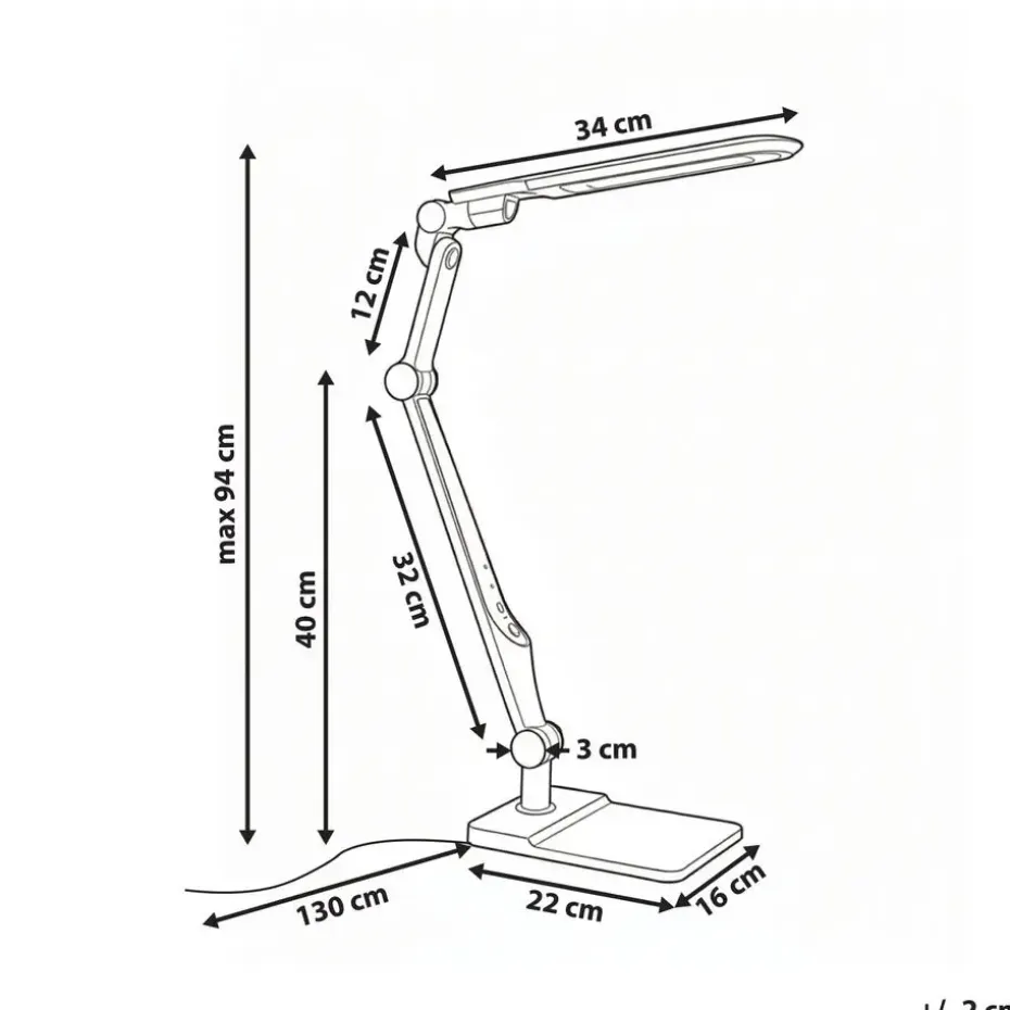 Belangrijkste eigenschappen: Dimmerfunctie om het lichtniveau aan te passen, Lange kabel voor gemakkelijke toegang tot stroom, Touch sensor-schakelaar, Verstelbare hoogte, Trendy design en kleur, Met 3 lichtstanden voor verschillende licht tempraturen