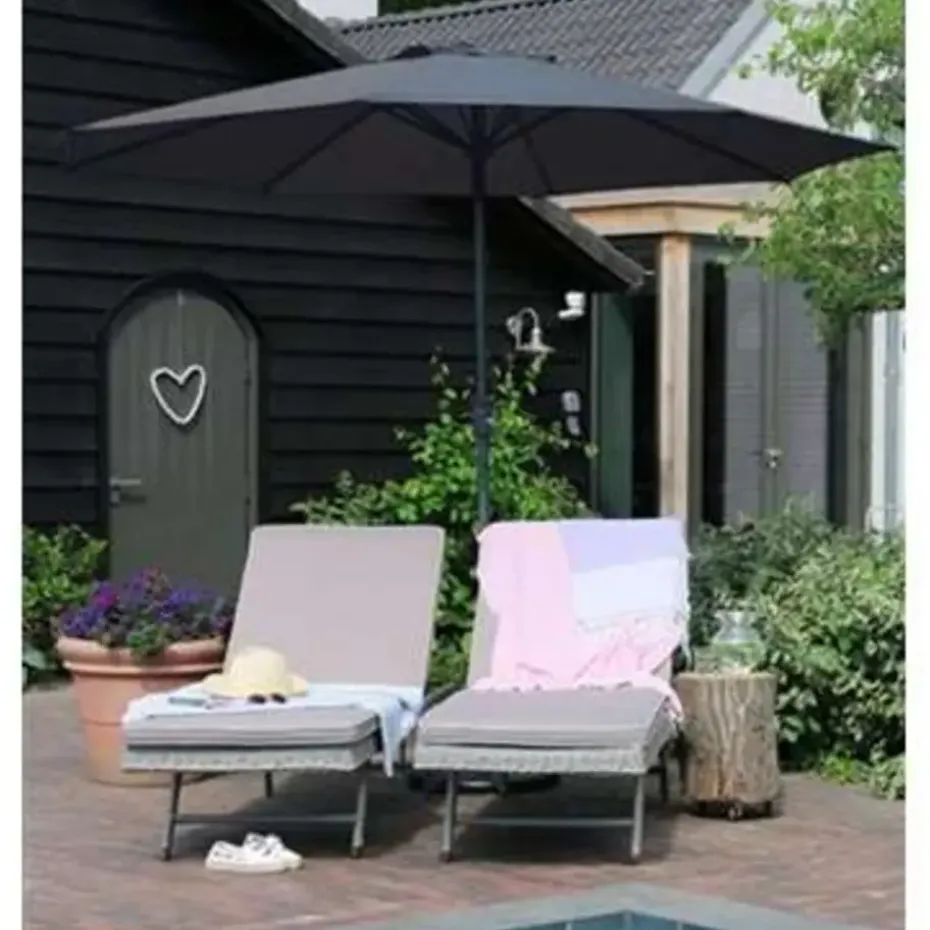 Lekker uit de zon zitten doe je met deze PimXL parasol met een diameter van 300 centimeter. Je kunt de parasol extra gemakkelijk open- en dichtdraaien door het draaimolentje. De parasol heeft een ronde vorm met 8 metalen baleinen en heeft stevig 180g/m² polyester doek in de kleur antraciet. De parasol wordt geleverd zonder parasolvoet.