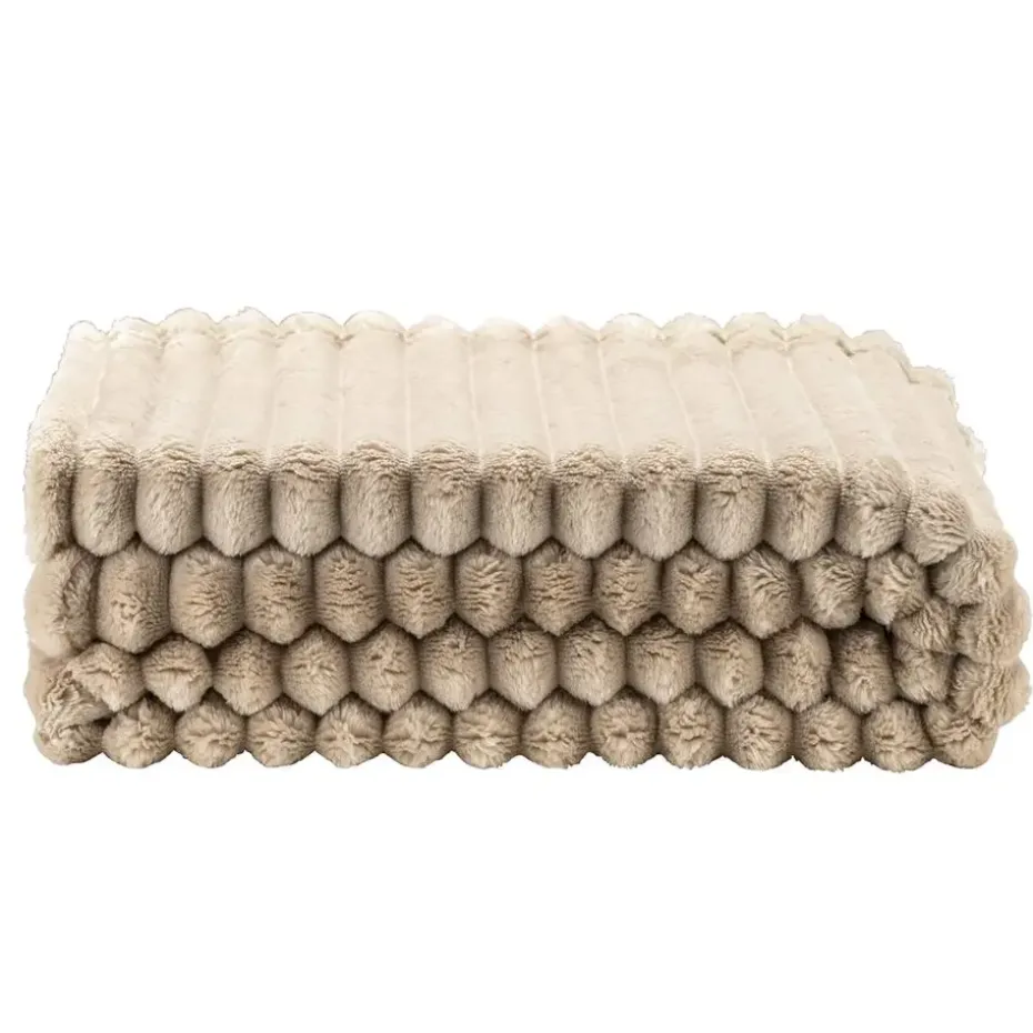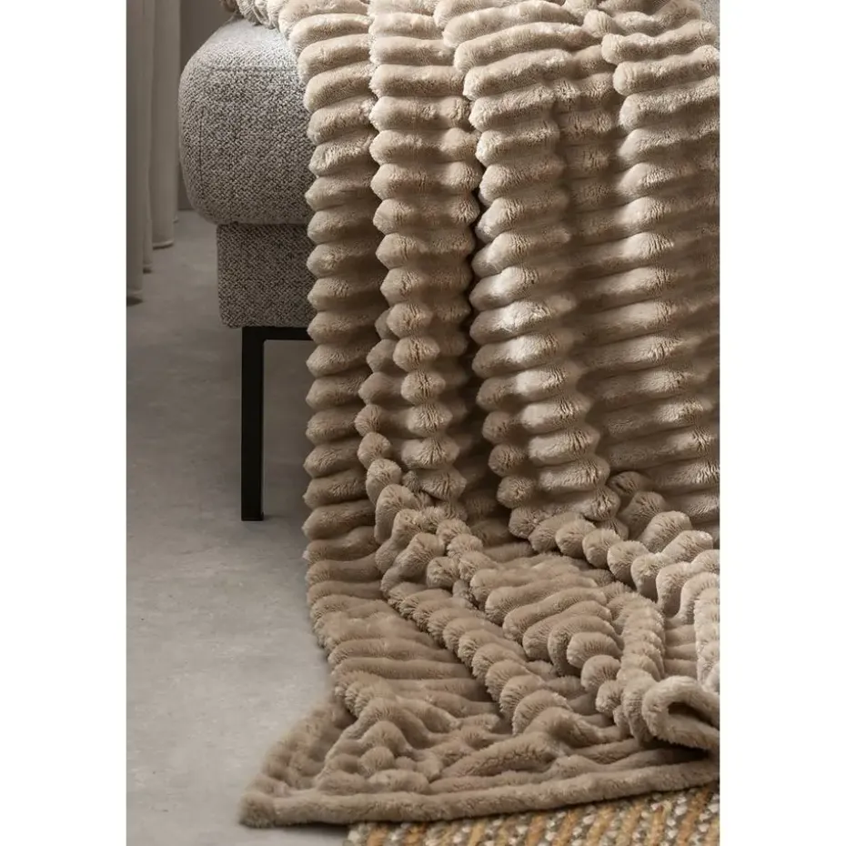 Haal de warmte van Zaira plaid in zandkleur in huis voor een onweerstaanbare sfeer en gezelligheid op de bank. Dit plaid heeft een uniek ribpatroon met grote ribbels, gemaakt van 100% polyester, voor een stijlvolle uitstraling. Met een royale grootte van 130×170 cm is Zaira plaid perfect om jezelf in te wikkelen tijdens ontspannen momenten. Kies voor comfort en stijl met deze prachtige plaid!