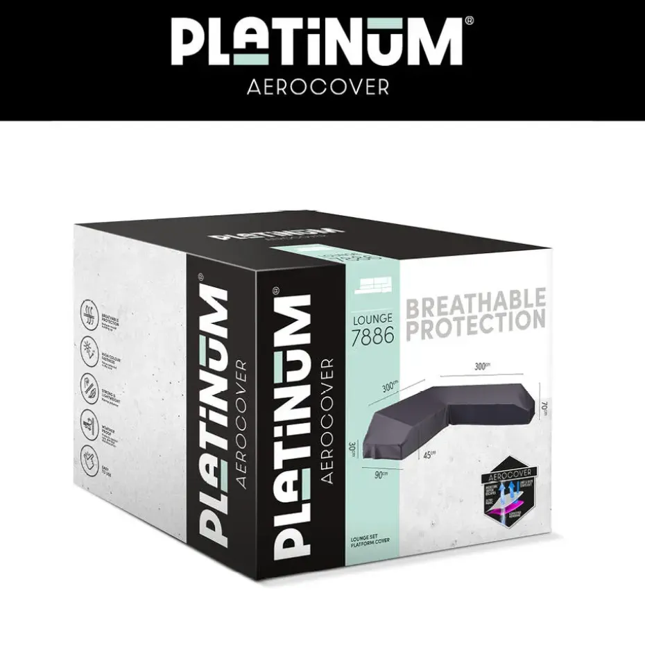 Bescherm uw loungeset optimaal met de platofrm loungesethoes van het bekende hoezen merk Aerocover. Het voordeel ten opzichte van een vierkante hoes is dat er in een l-vormige hoes geen waterzakken kunnen ontstaan en de hoes dus ook niet door kan gaan lekken. Het materiaal van de hoes is ripstop polyester, dit is erg soepel en stevig. Het rasterpatroon zorgt ervoor dat als er in de toekomst een gat in de hoes zal komen deze niet door kan scheuren.