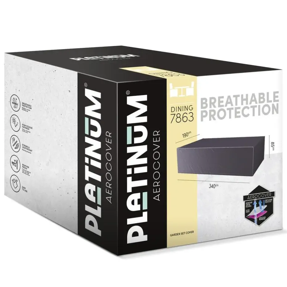 Ontdek de ultieme bescherming en stijl voor je geliefde tuinset met onze rechthoekige Platinum Aerocover tuinsethoes. Deze hoes biedt een royale afmeting van 340 cm lang, 190 cm breed en 85 cm hoog, waardoor zowel je tafel als stoelen perfect passen en volledig worden beschermd. Vervaardigd uit duurzaam ripstop polyester, combineert deze hoes kracht en flexibiliteit in één. Dankzij het geavanceerde rastertextuur blijft je tuinset in topconditie, zelfs bij kleine beschadigingen van de hoes. Onze Aerocover tuinsethoes, een meesterwerk van vakmanschap, biedt niet alleen bescherming tegen alle weersomstandigheden, maar ook moeiteloos gebruiksgemak en kleurvastheid.