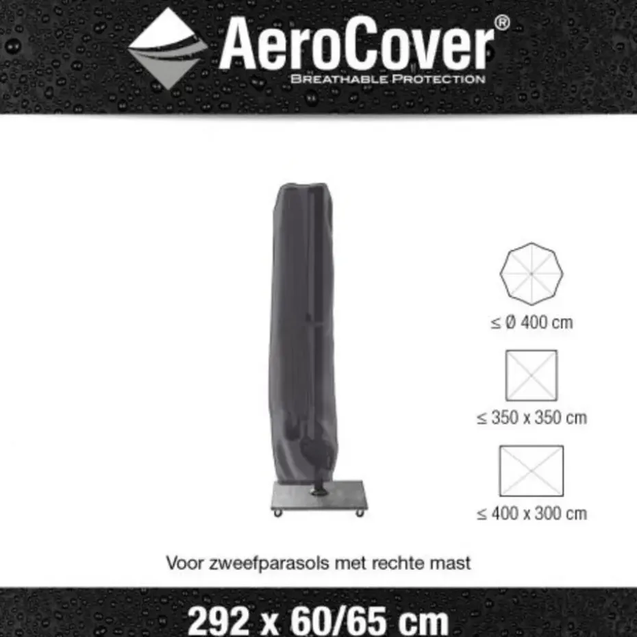 Bescherm de zweefparasol goed met de Aerocover parasolhoes. De hoes is gemaakt van een ripstop polyester. Dit materiaal is licht van gewicht en super stevig. De parasolhoes wordt geleverd inclusief een ingenaaid stokje zodat het eenvoudig is om de hoes over de parasol te bevestigen.