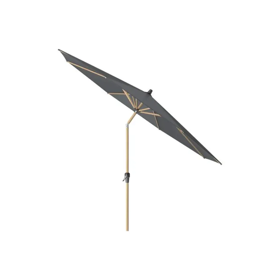 Het frame van de Riva parasol is gemaakt van aluminium en is afgewerkt met een teak houtlook. Dit combineert de voordelen van licht en roestvrij aluminium met de warme uitstraling van hout.