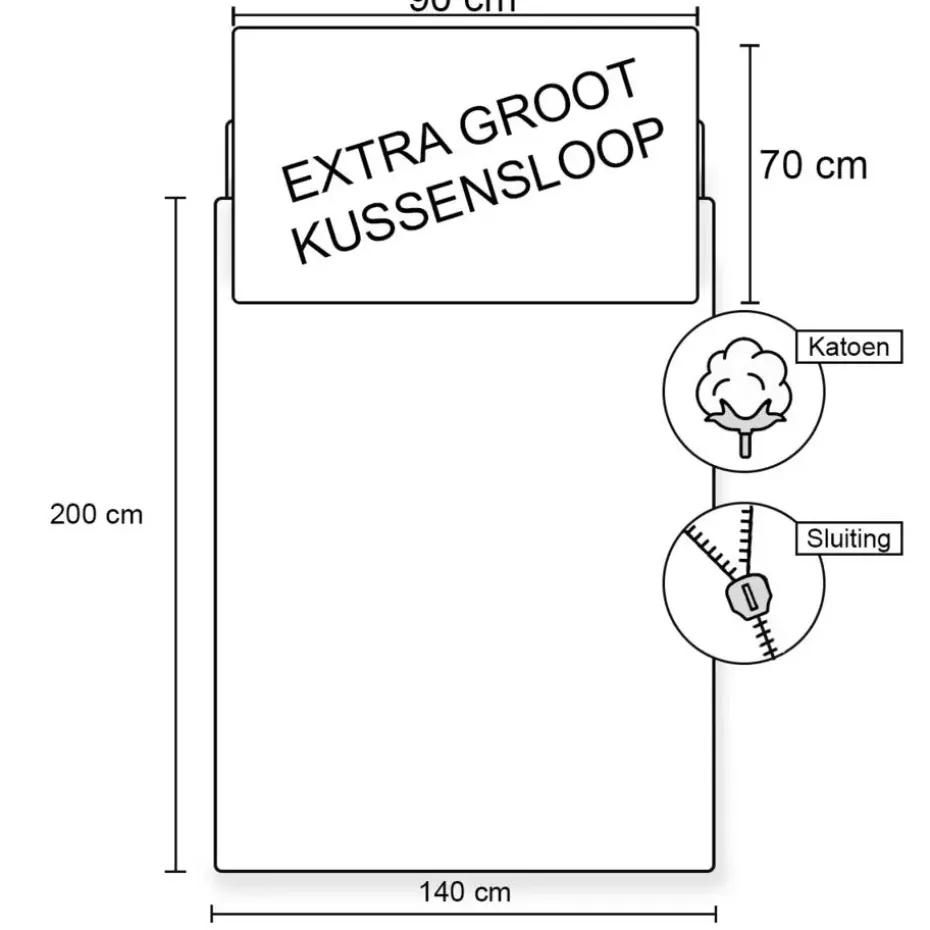 - Kussensloop: 70 x 90 cm (Extra groot!)